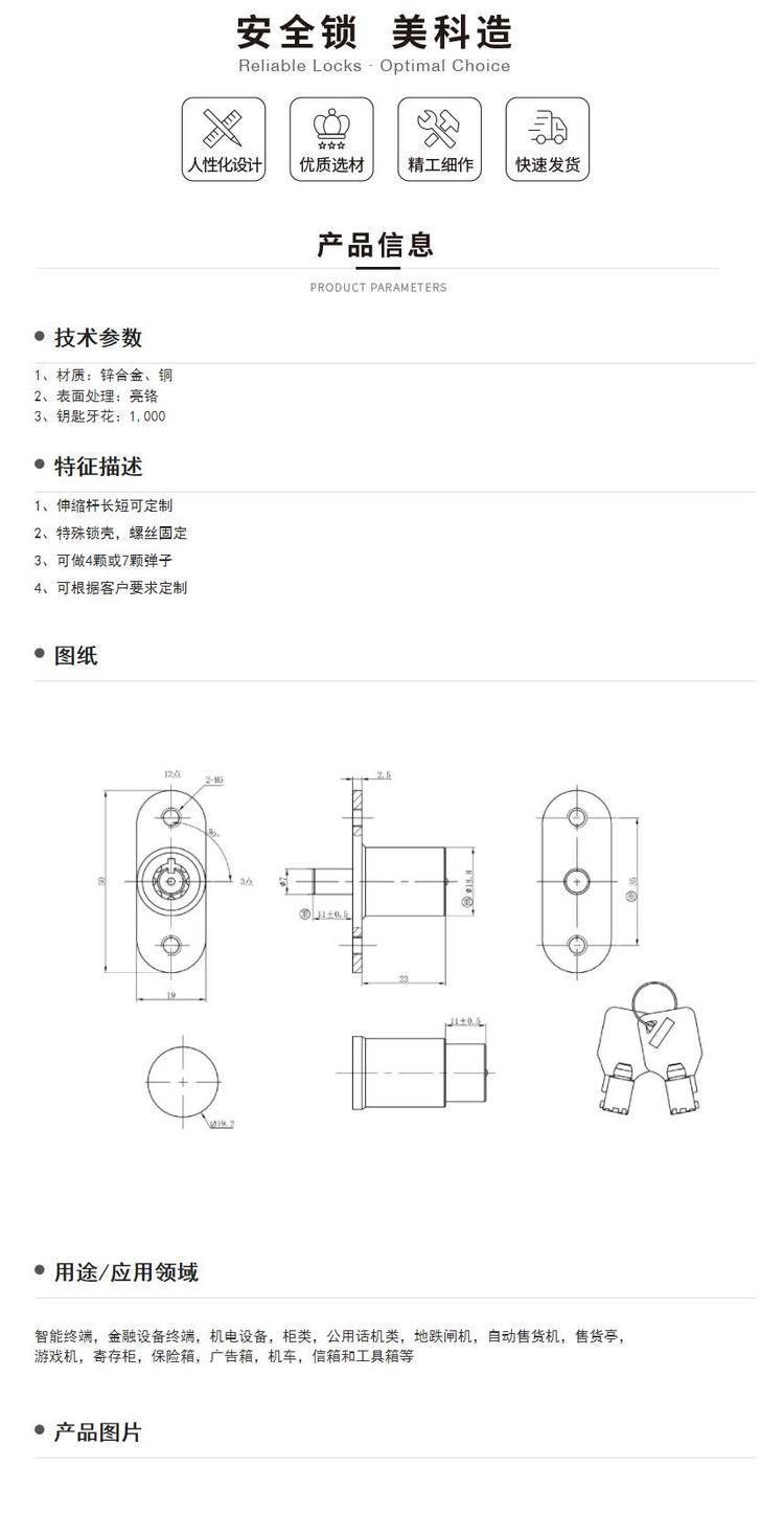 按压锁 移门柜锁 保险箱广告灯箱锁 摩托车锁 MK511-04