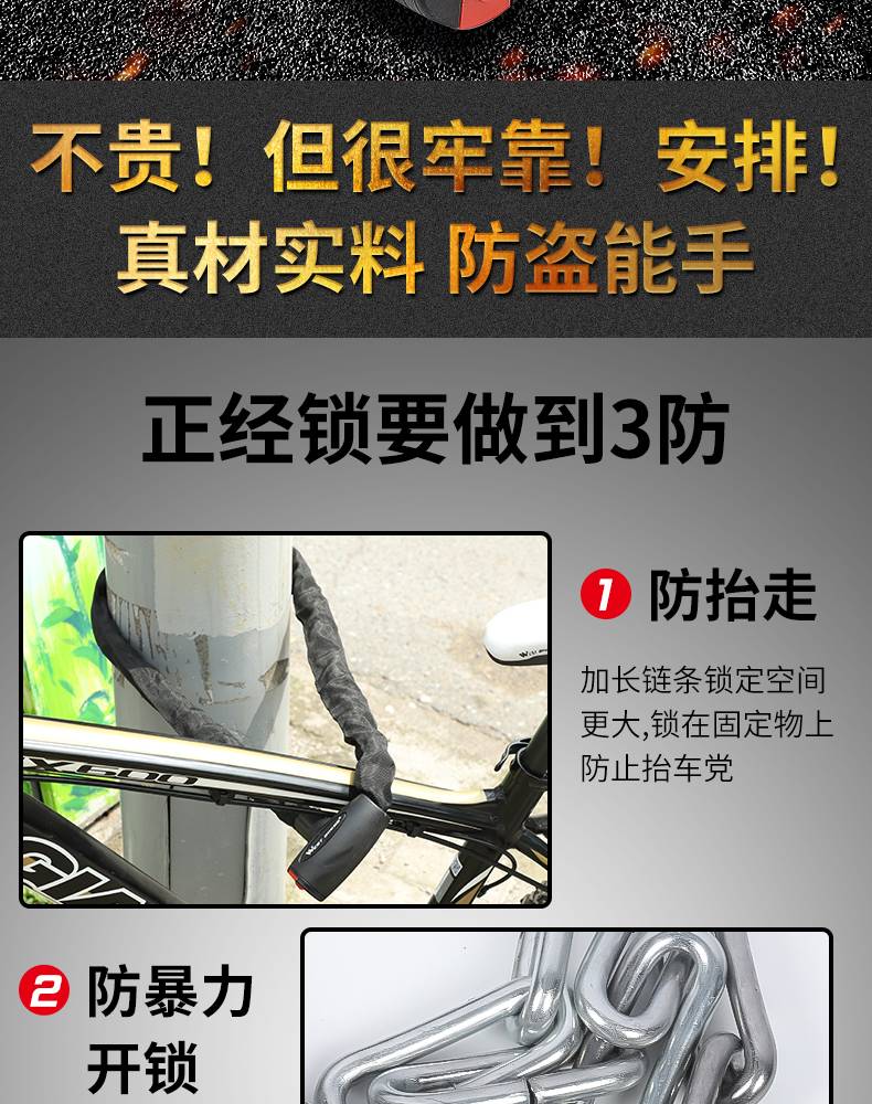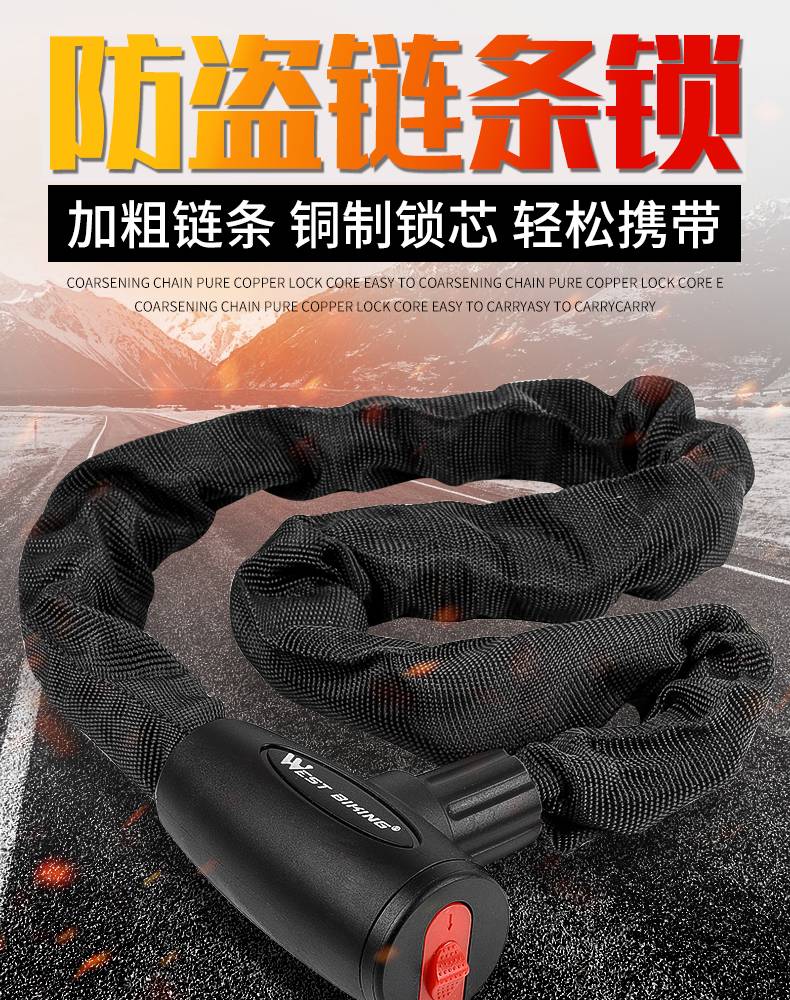 西骑者自行车锁链条锁电动电瓶车摩托车防盗山地车便携式单车链子