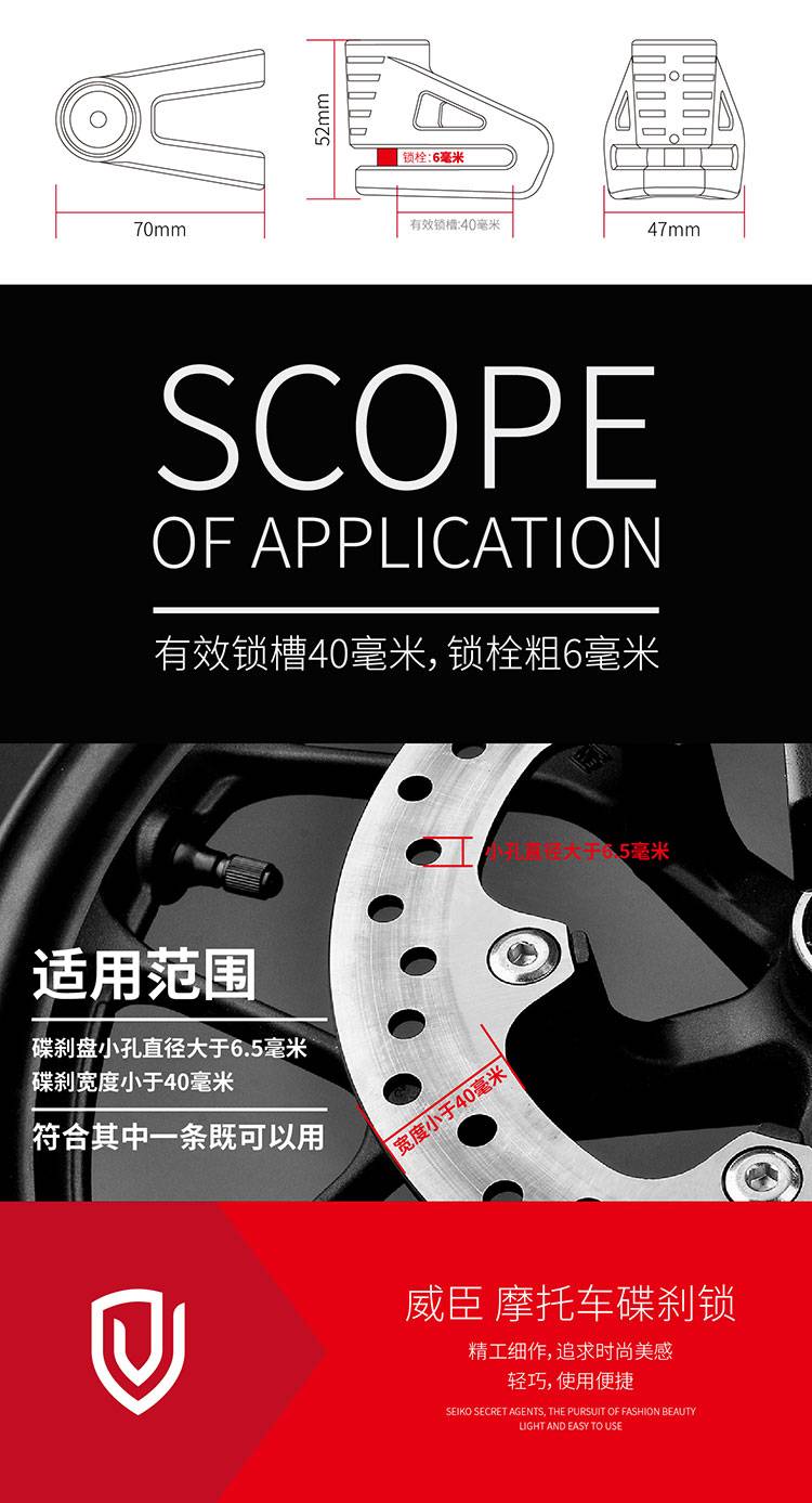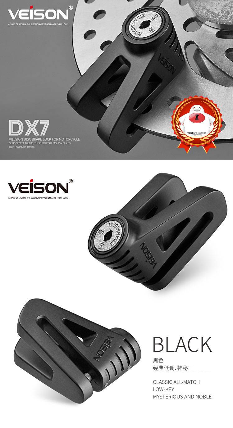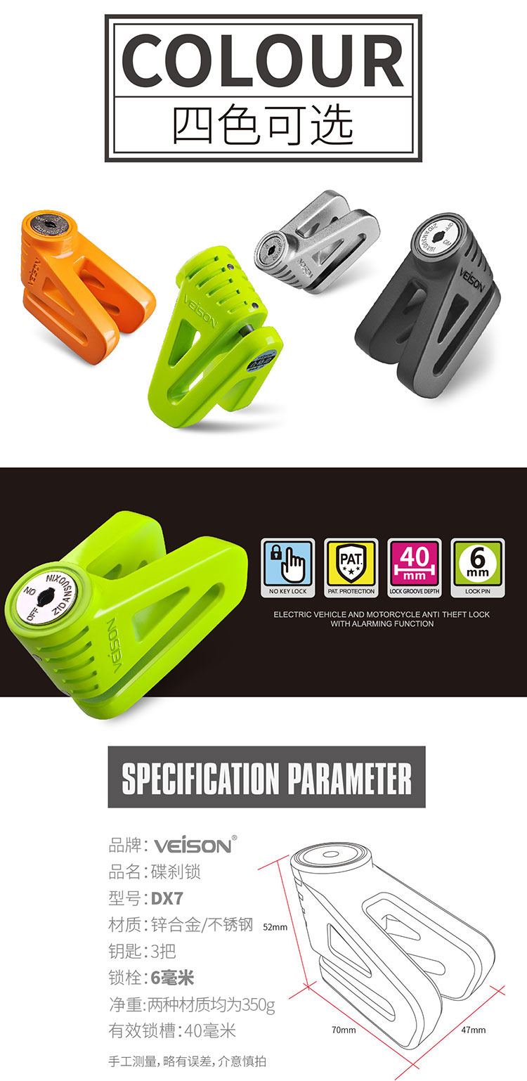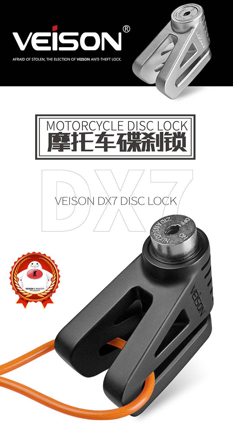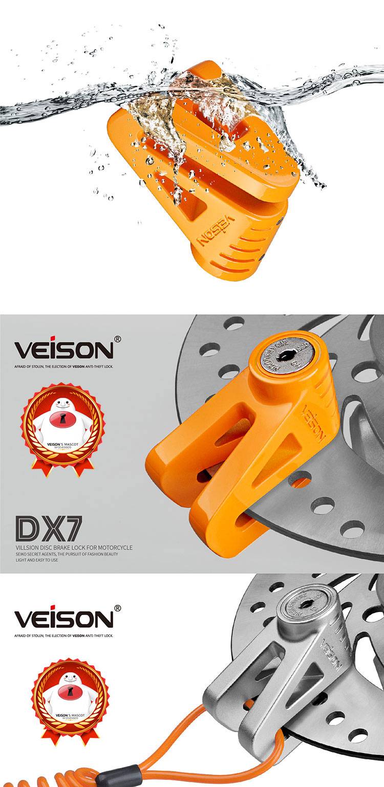 VEISON/威臣 摩托车不锈钢碟刹锁小牛锁电动电瓶自行车碟锁防盗锁