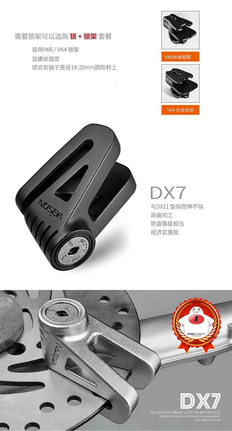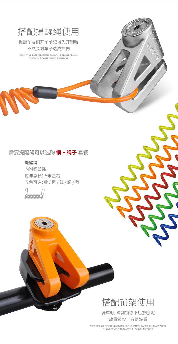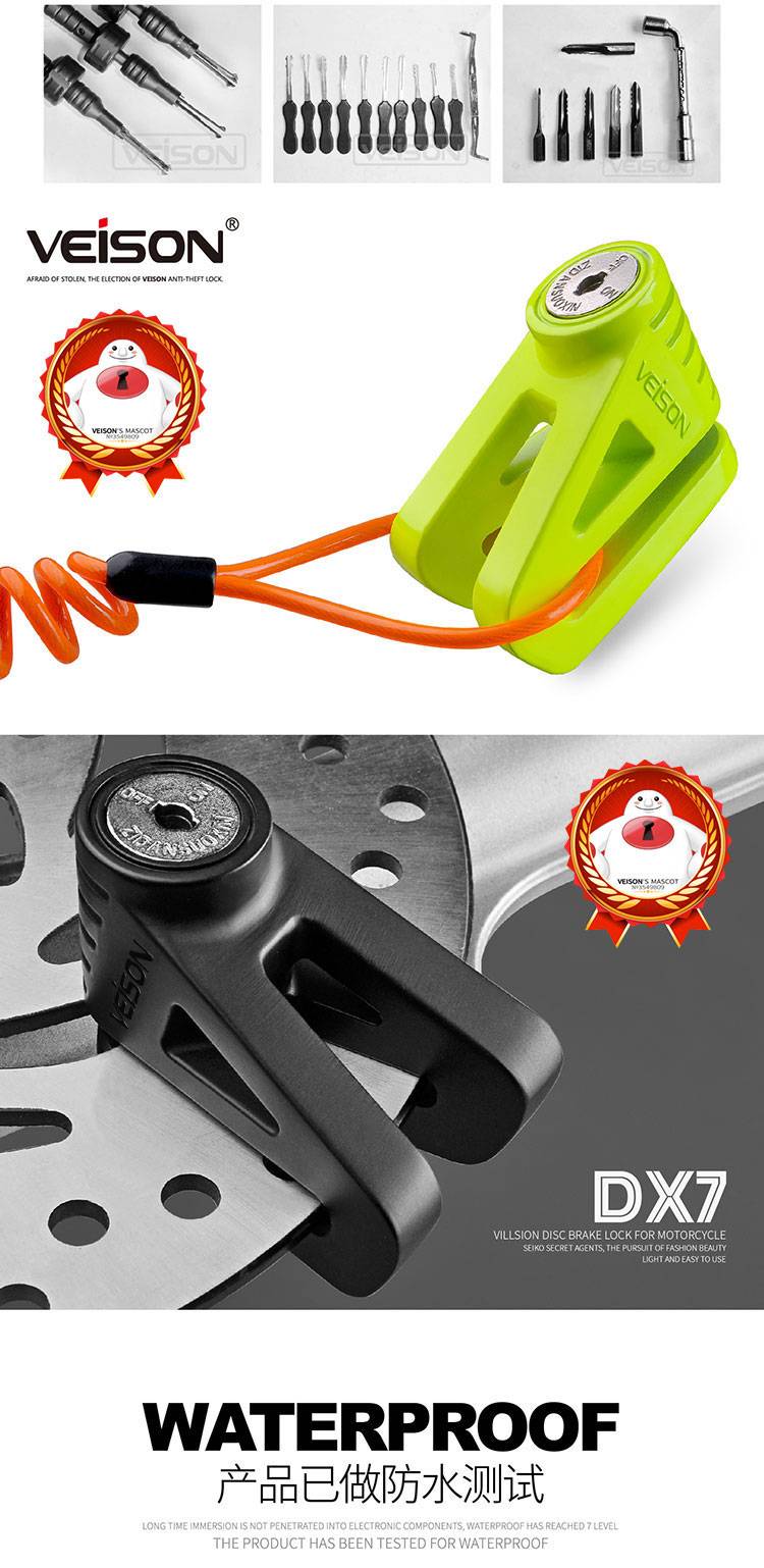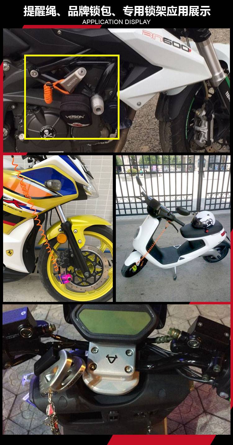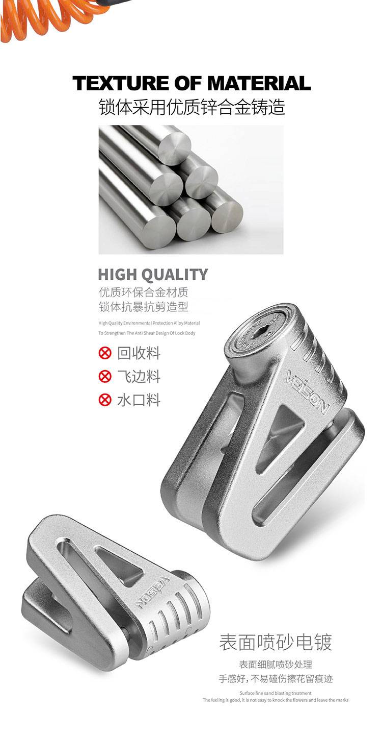 VEISON/威臣 摩托车不锈钢碟刹锁小牛锁电动电瓶自行车碟锁防盗锁