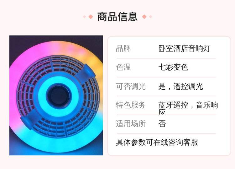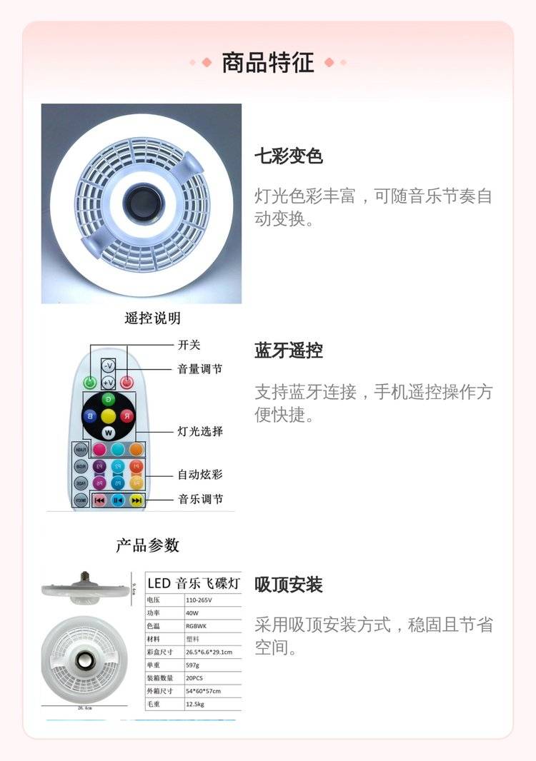 蓝牙遥控音乐灯 七彩变光灯 氛围吸顶灯 卧室酒店音响灯