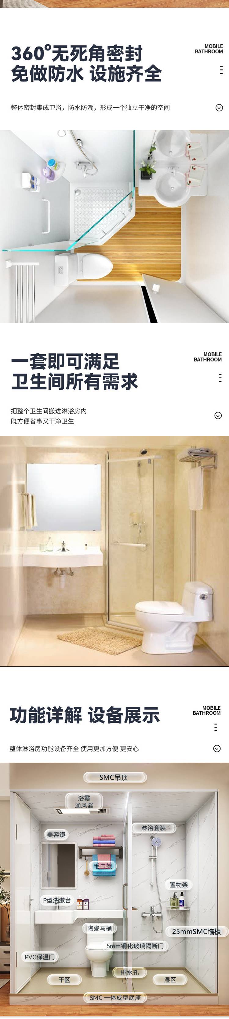 宾馆整体浴室 长方形浴室整体淋浴房 酒店工地可适用