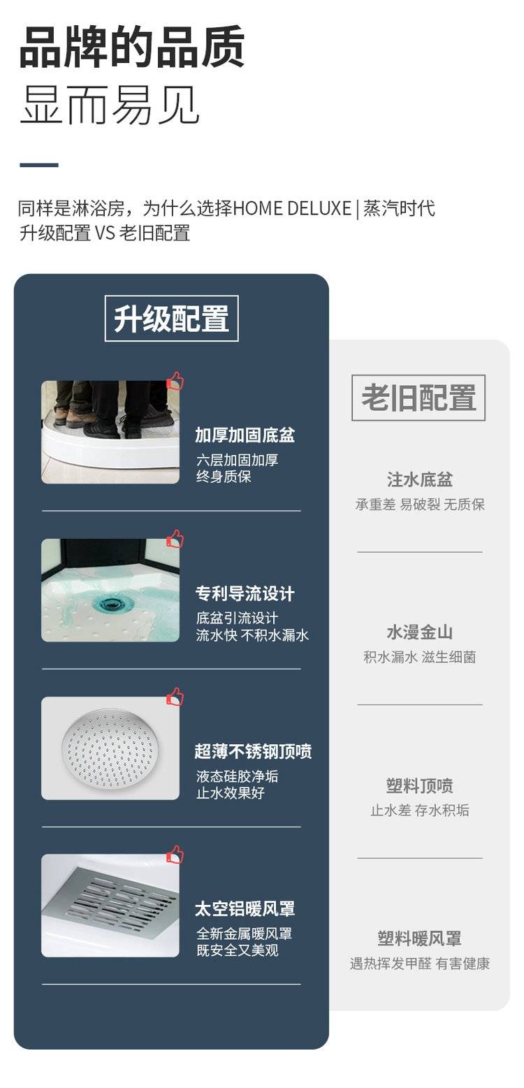 整体淋浴房一体式家用农村成品浴室浴屏带底座长方形洗澡间沐浴房
