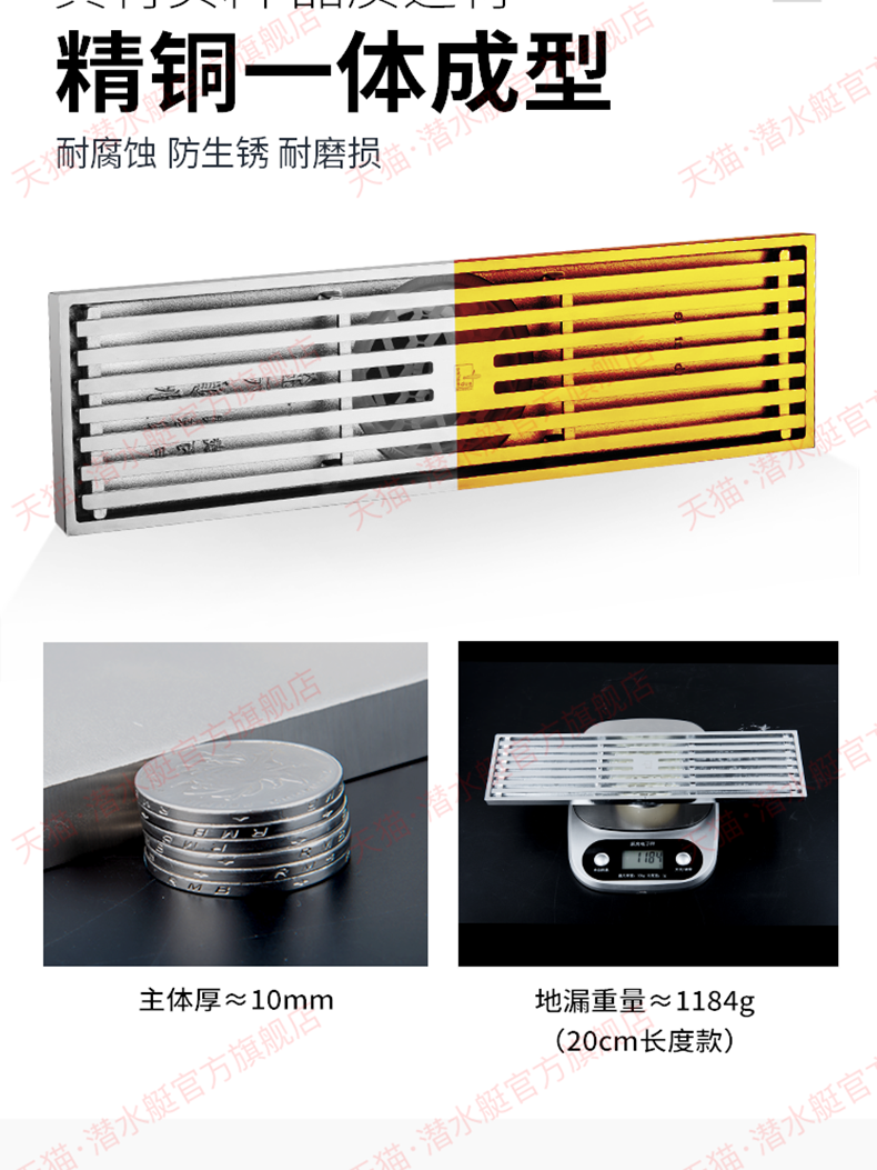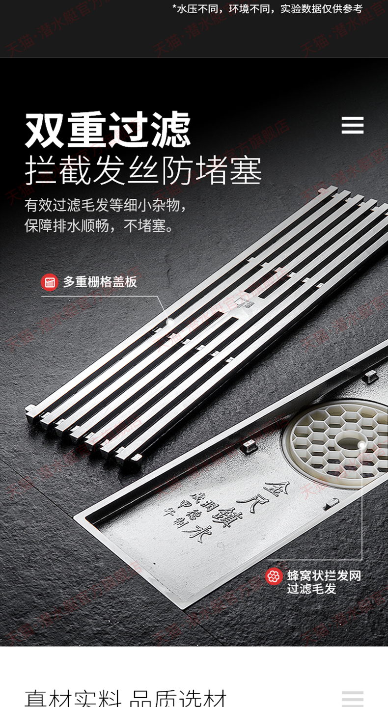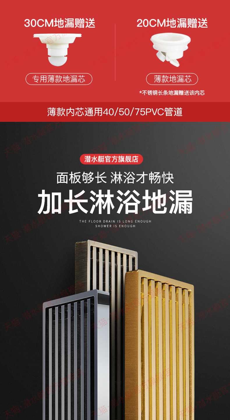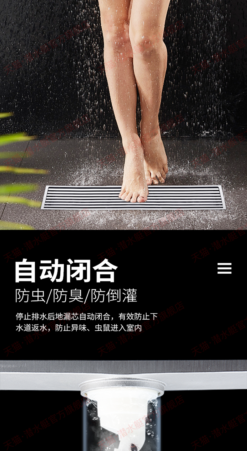 潜水艇地漏长条长方形淋浴...