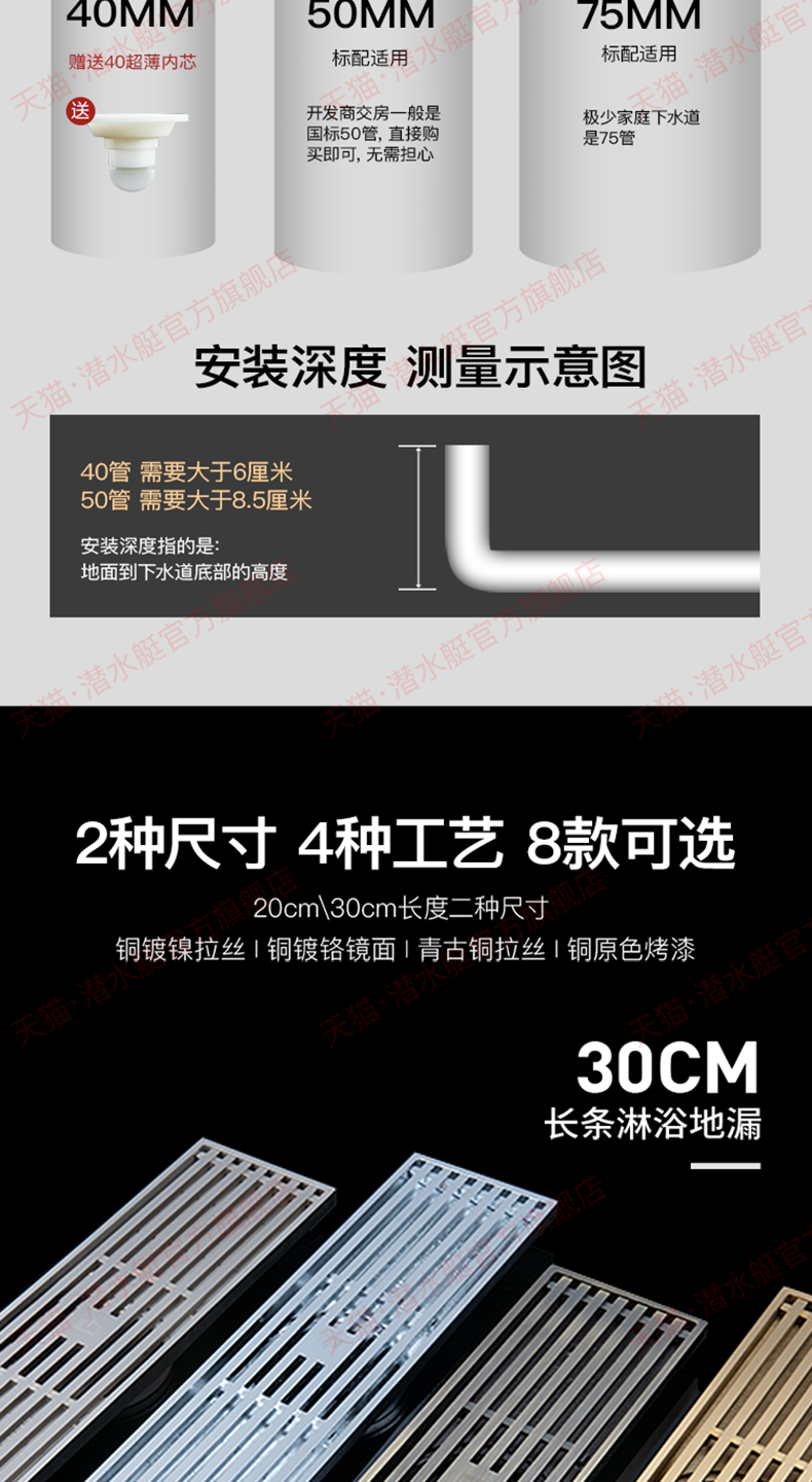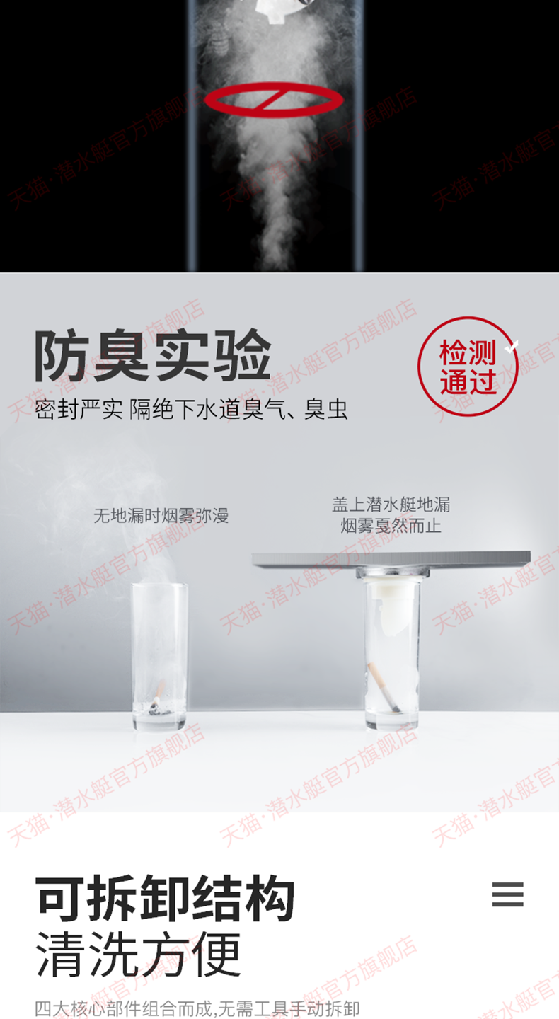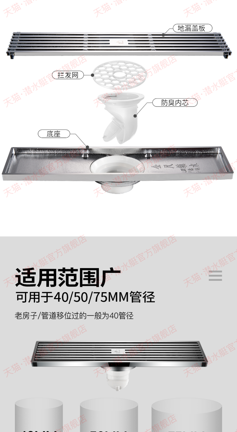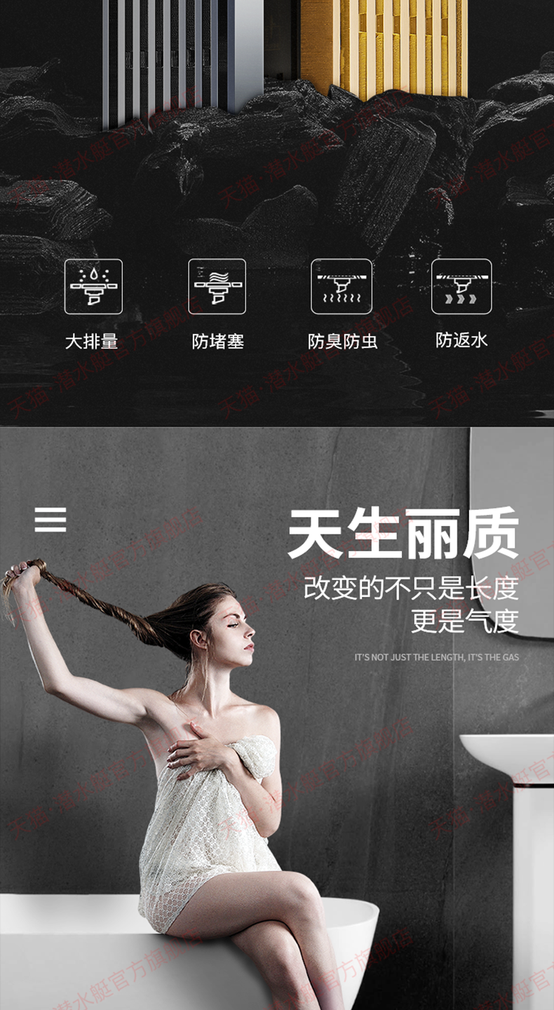 潜水艇地漏长条长方形淋浴...