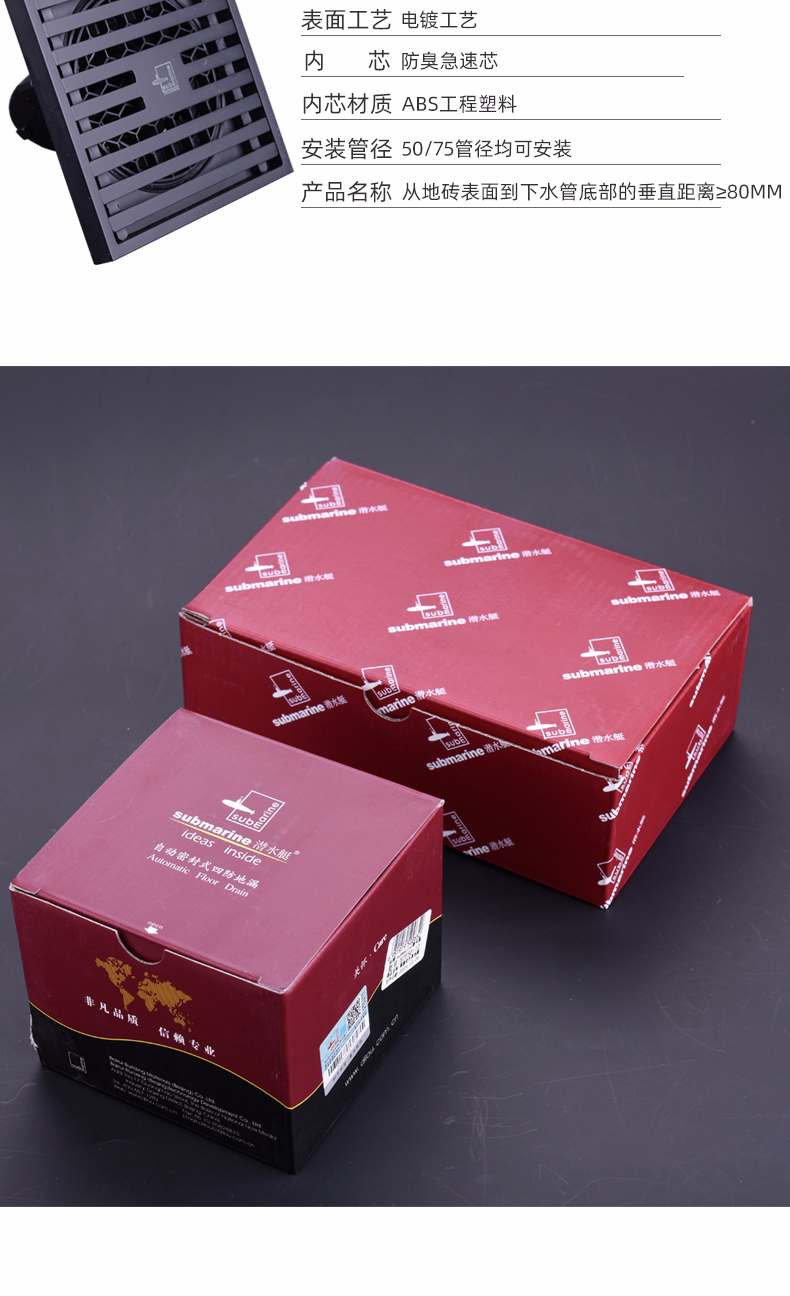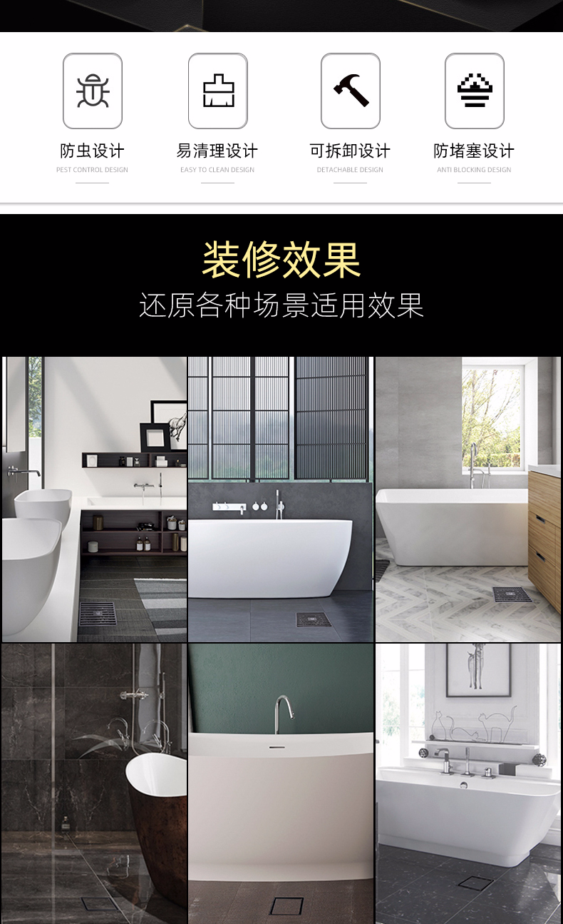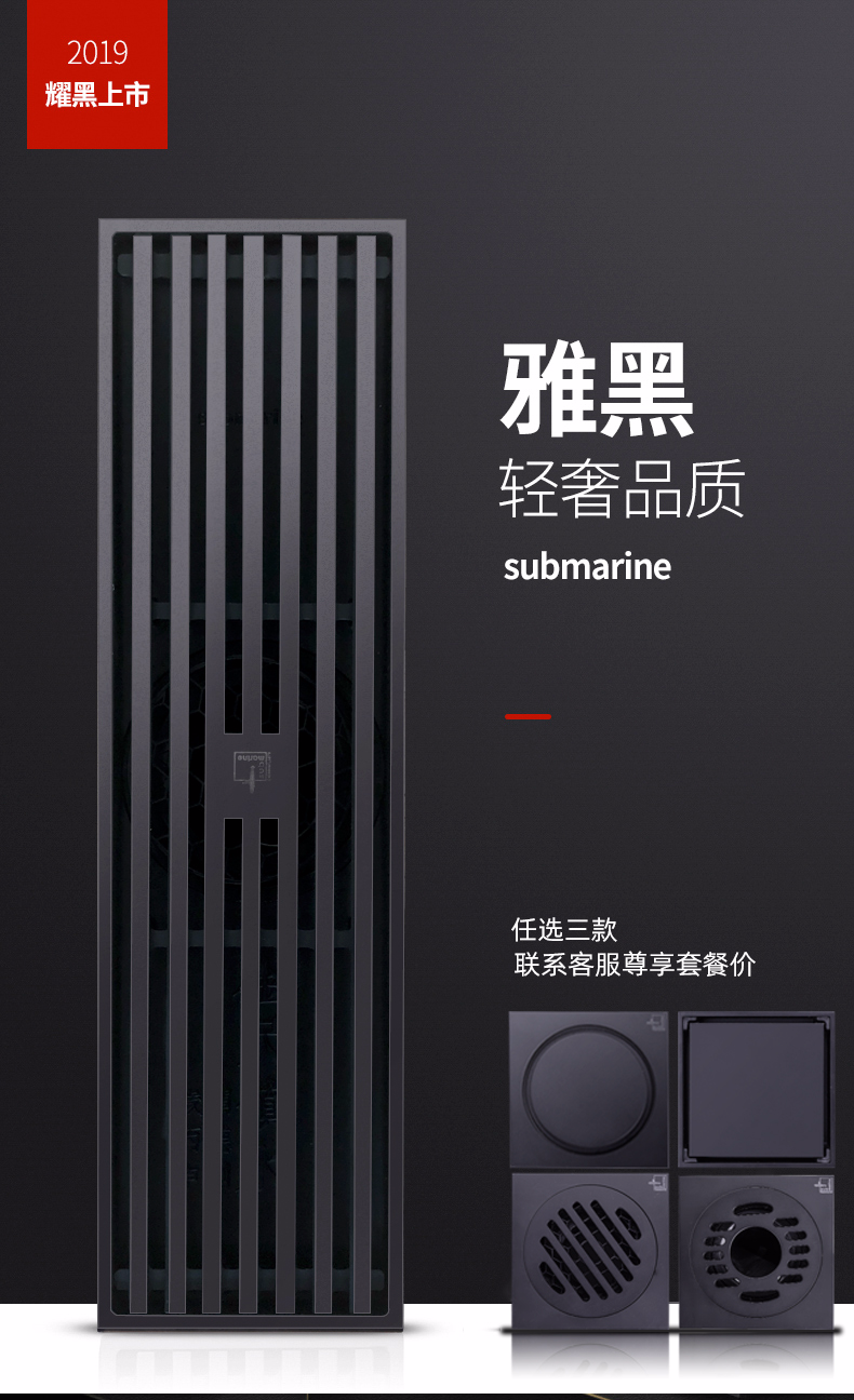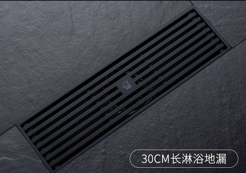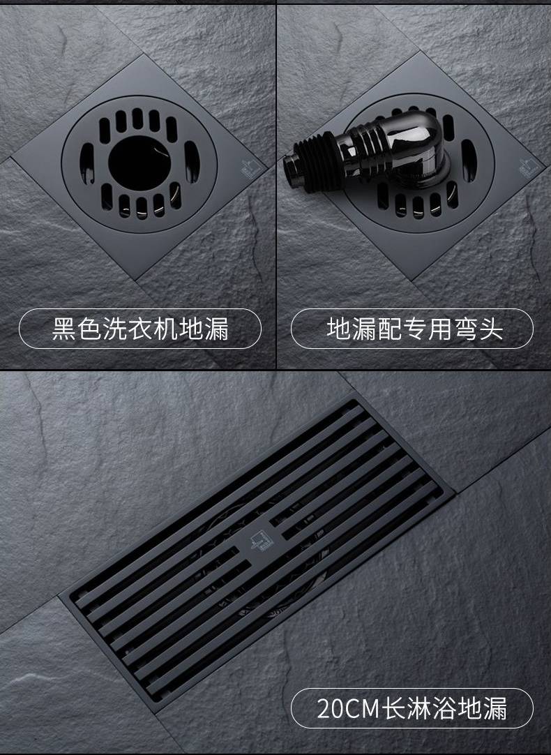 潜水艇黑色地漏防臭器卫生间长方形隐形浴室全铜淋浴房洗衣机两用
