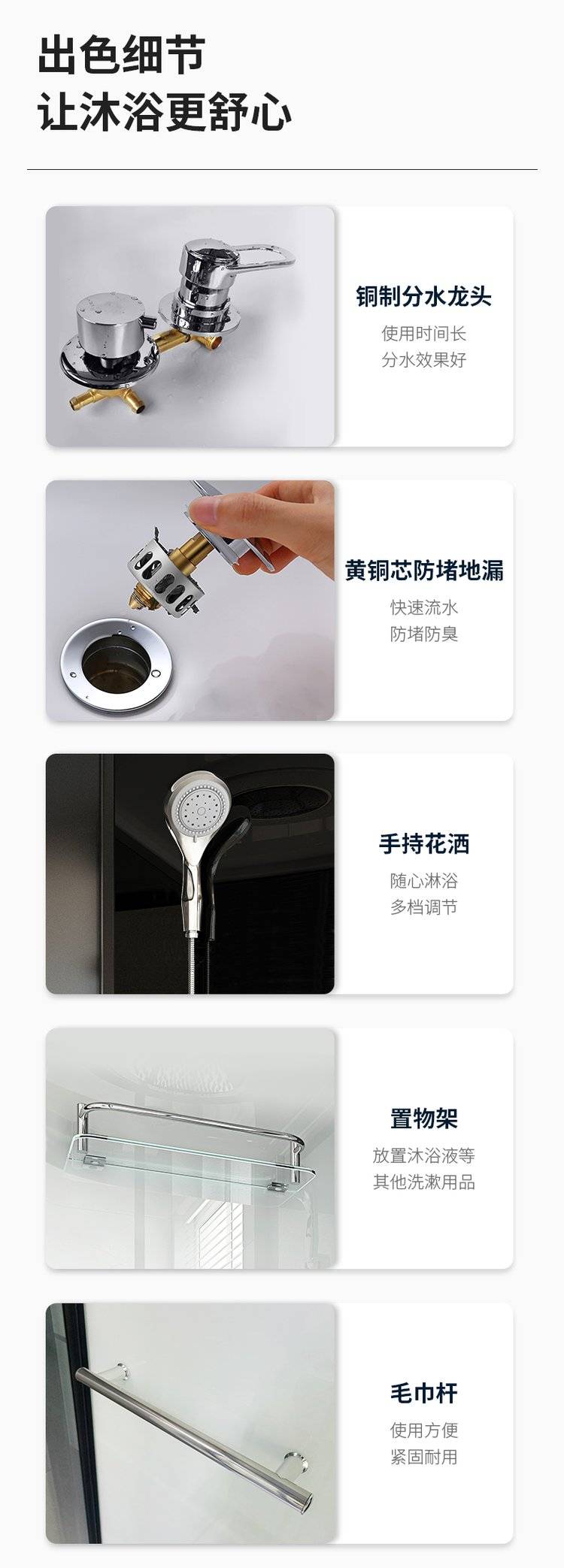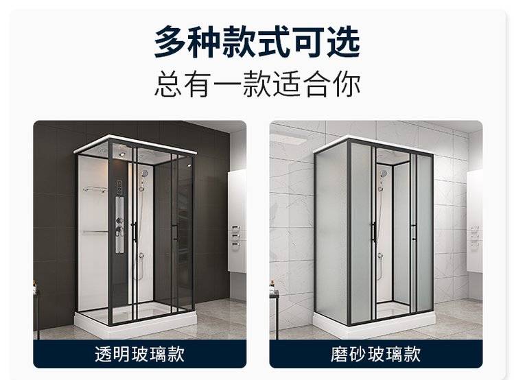 淋浴房整体浴室一体式家用底座沐浴房成品玻璃带暖风长方形洗澡间