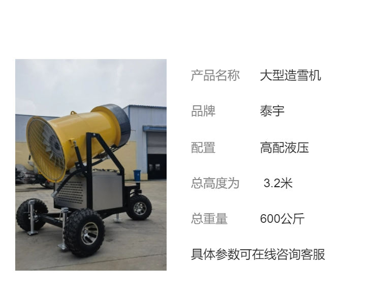 泰宇多功能雾炮造雪机设备 全自动远程遥控操作造雪简单 雪地卡丁车