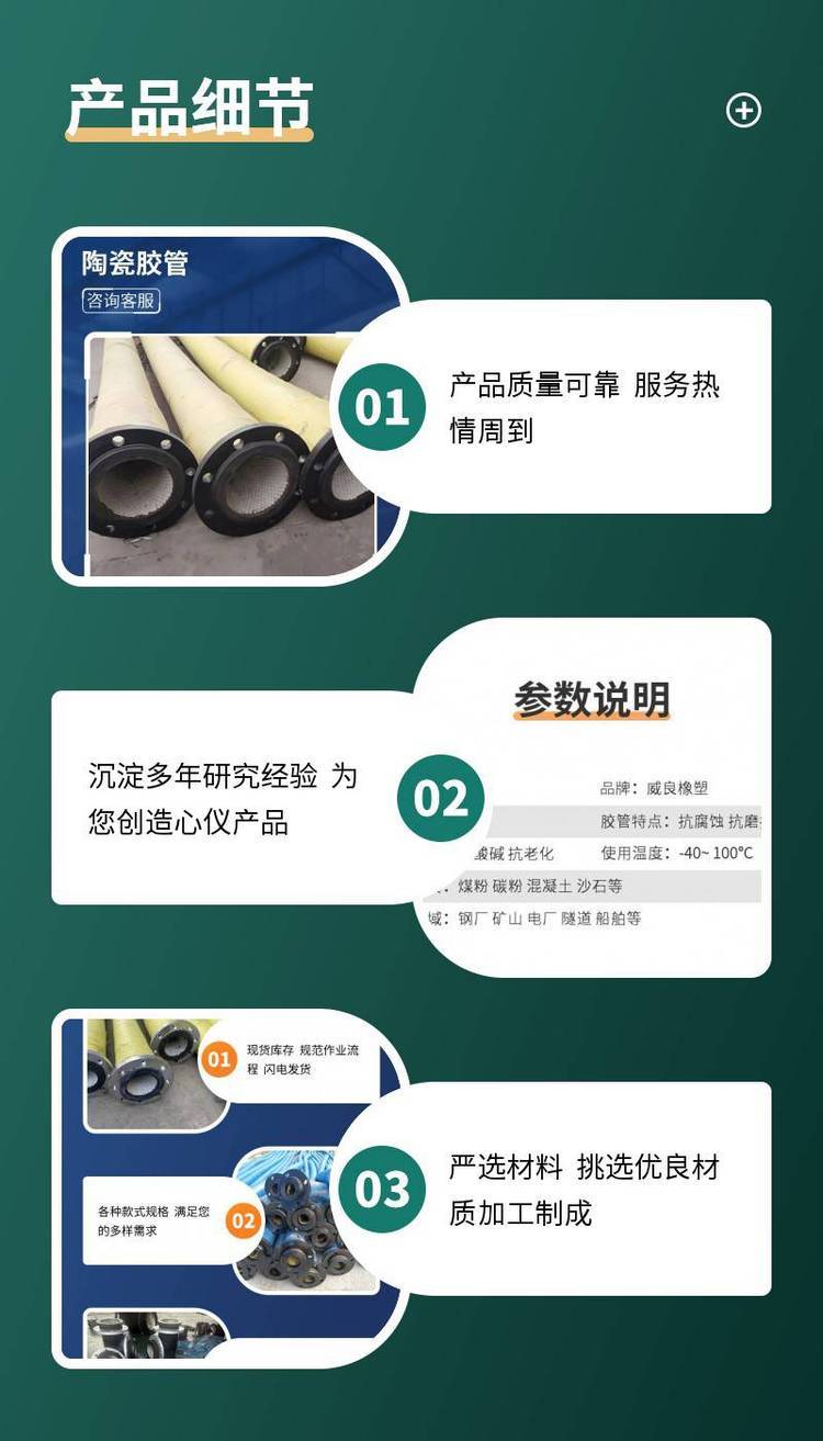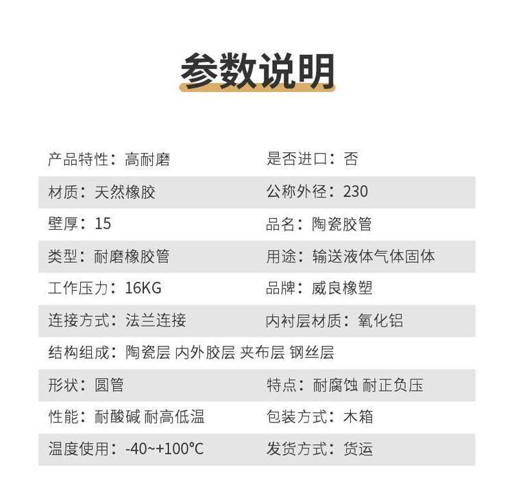 大口径陶瓷胶管 耐酸碱 合成橡胶 威良厂家可按客户需求加工 矿山排沙