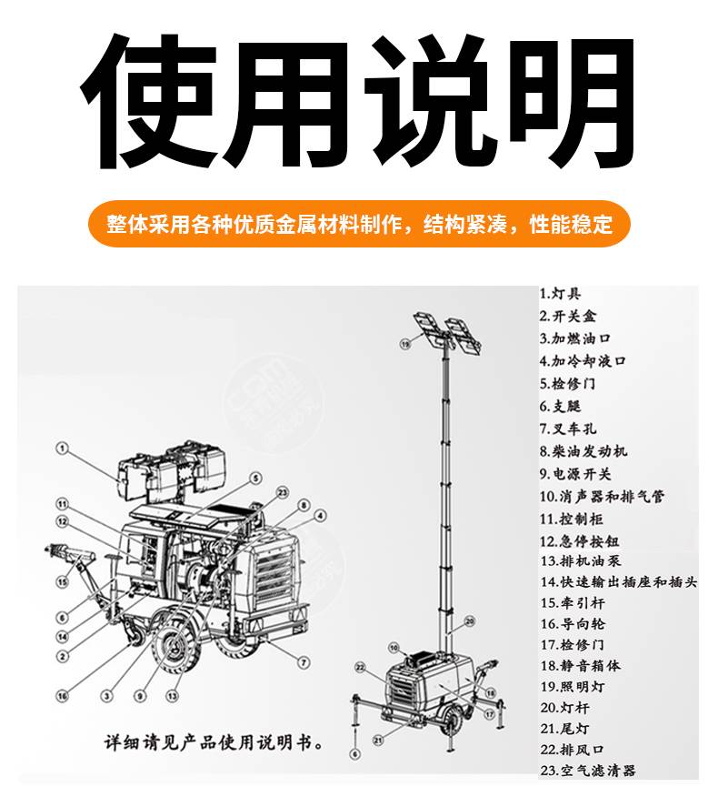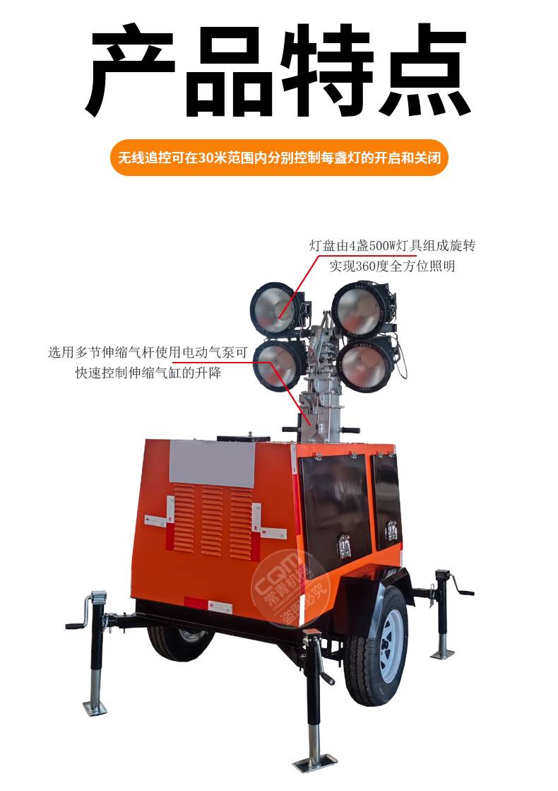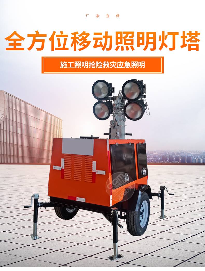 移动照明车手推式手摇升降应急灯汽油柴油发电机组拖车式照明灯塔
