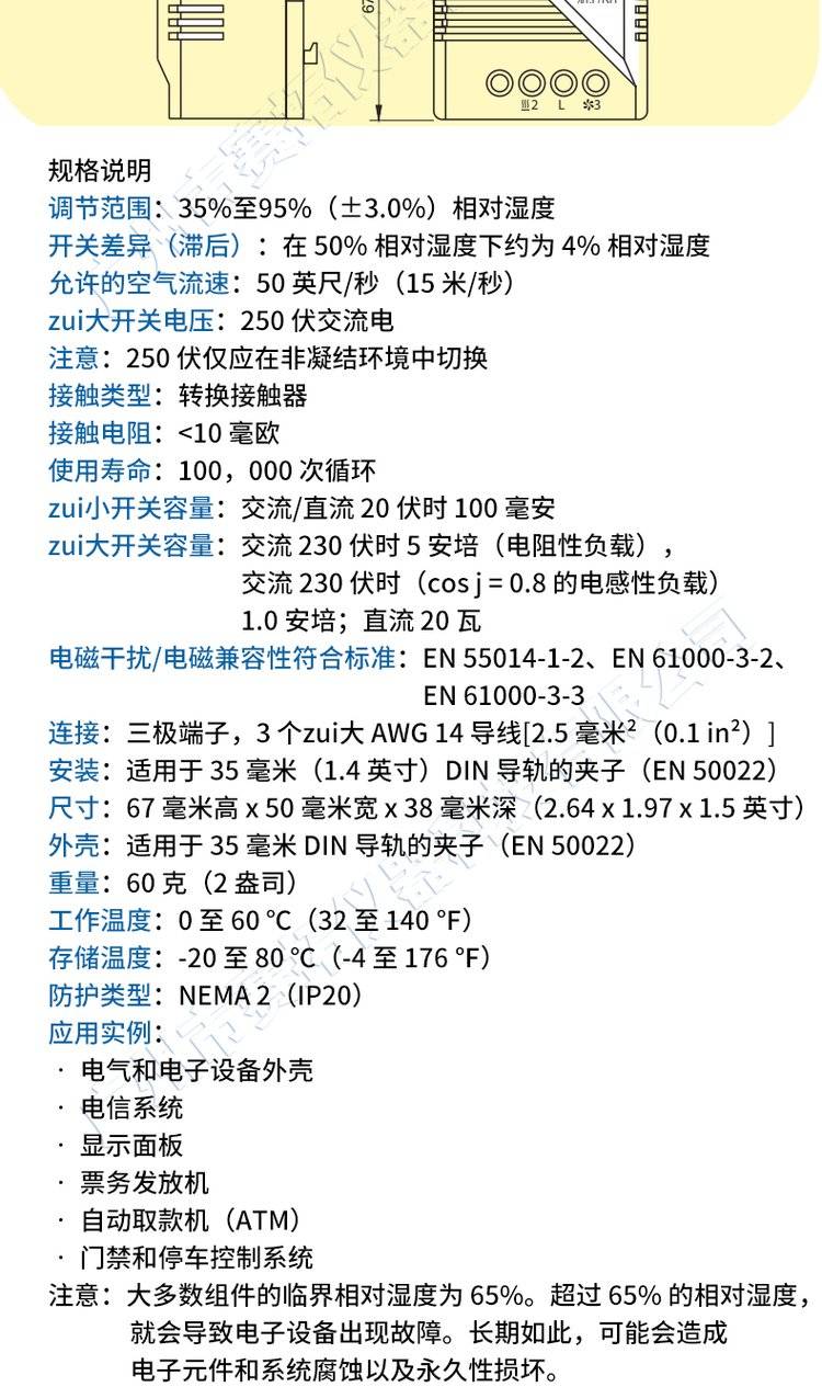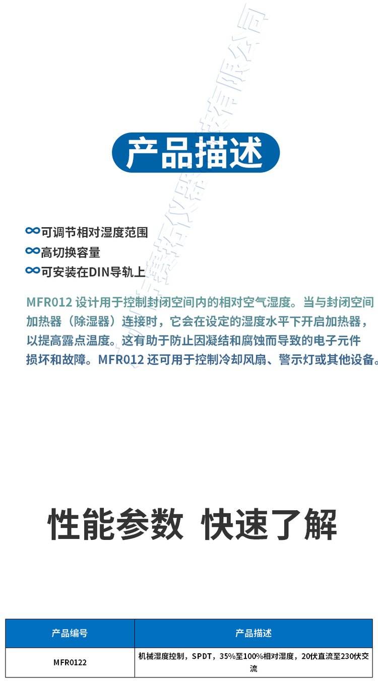 美国奥米佳湿度控制器高切换容量MFR012湿度传感器/湿度调节器