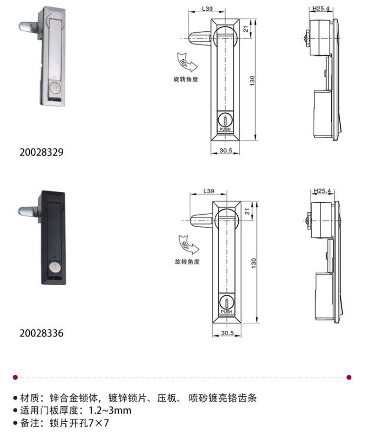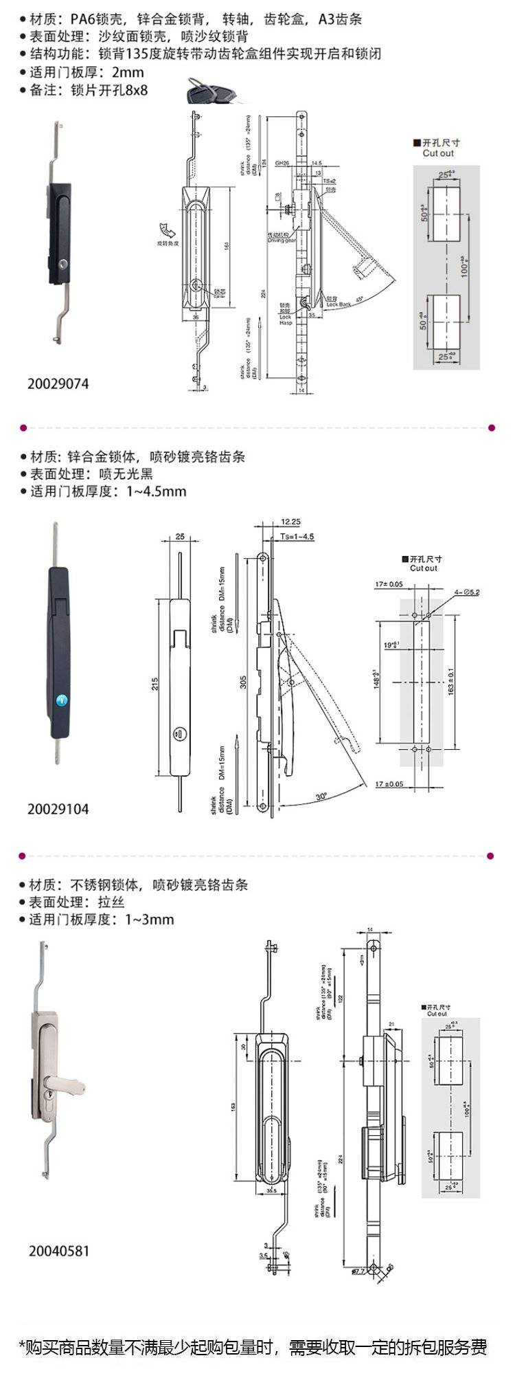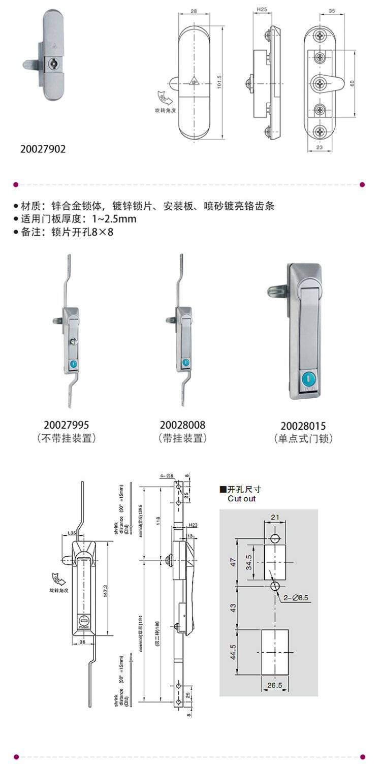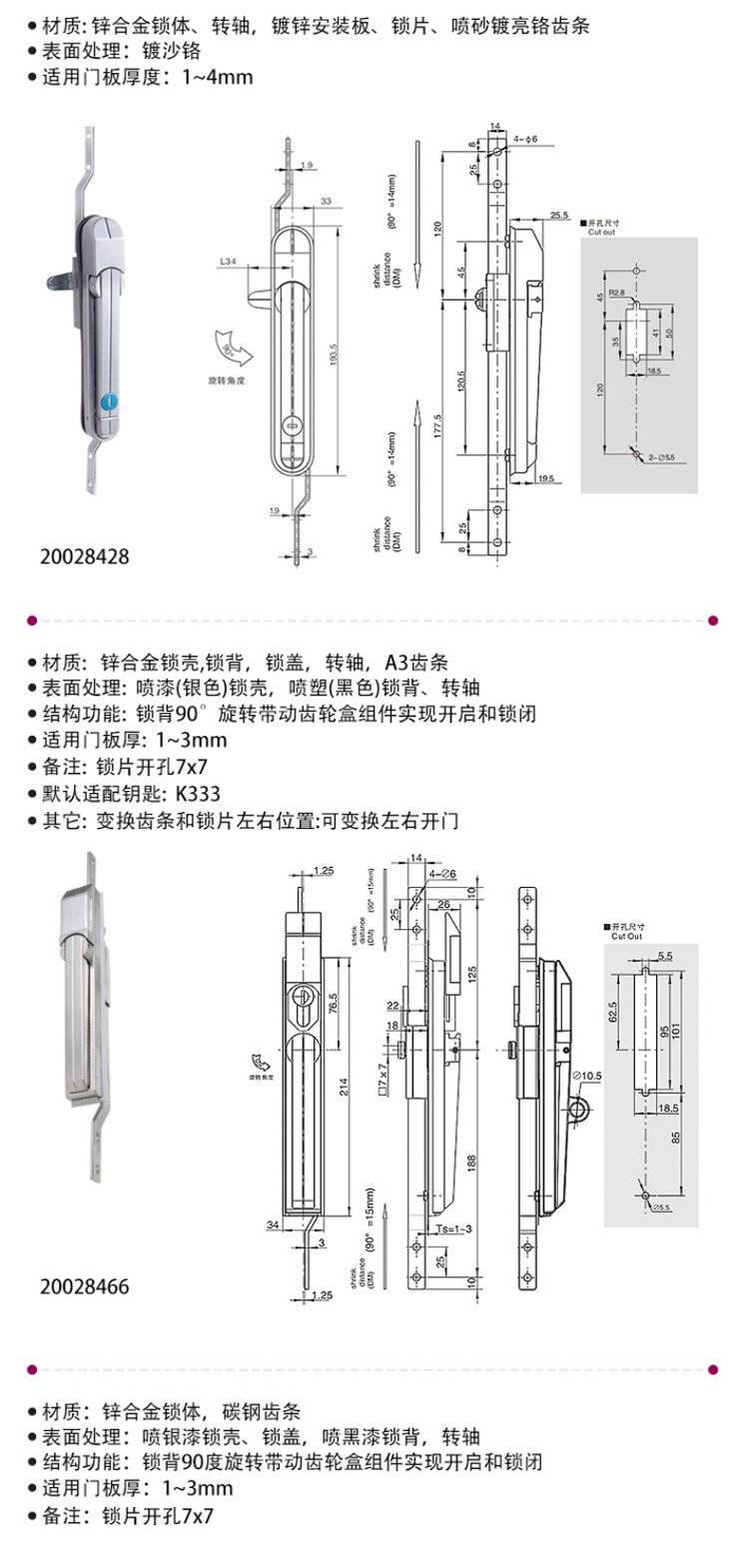 ESSENTRA益升华 三点式锌合金配电箱柜门锁 SR 5537齿轮传动式连杆锁