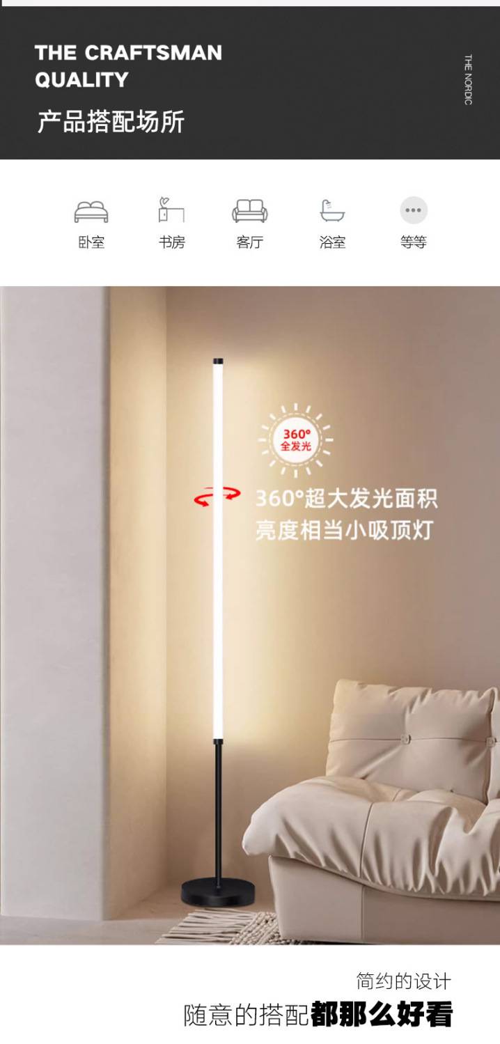 led极简落地灯客厅卧室床头柜玄关现代沙发背景墙ins氛围灯厂