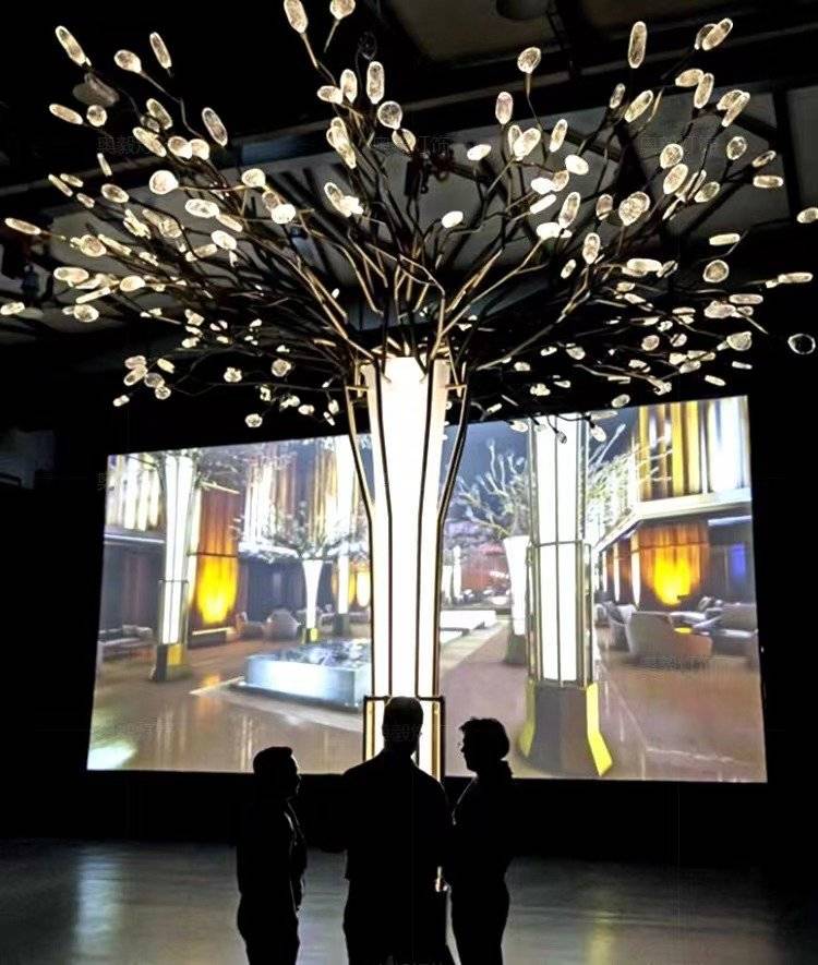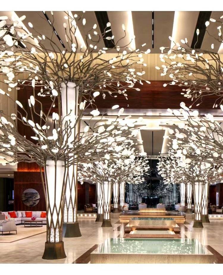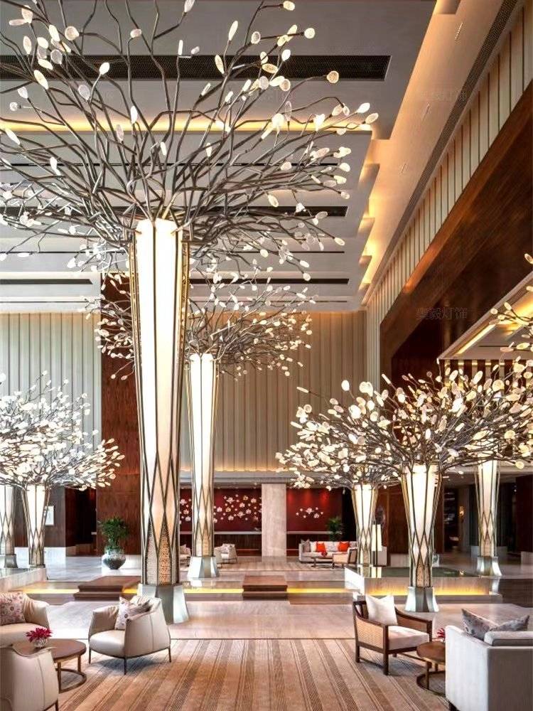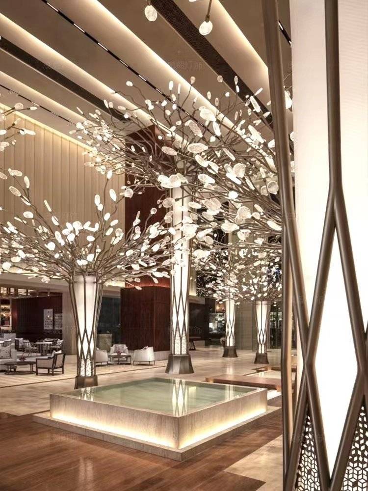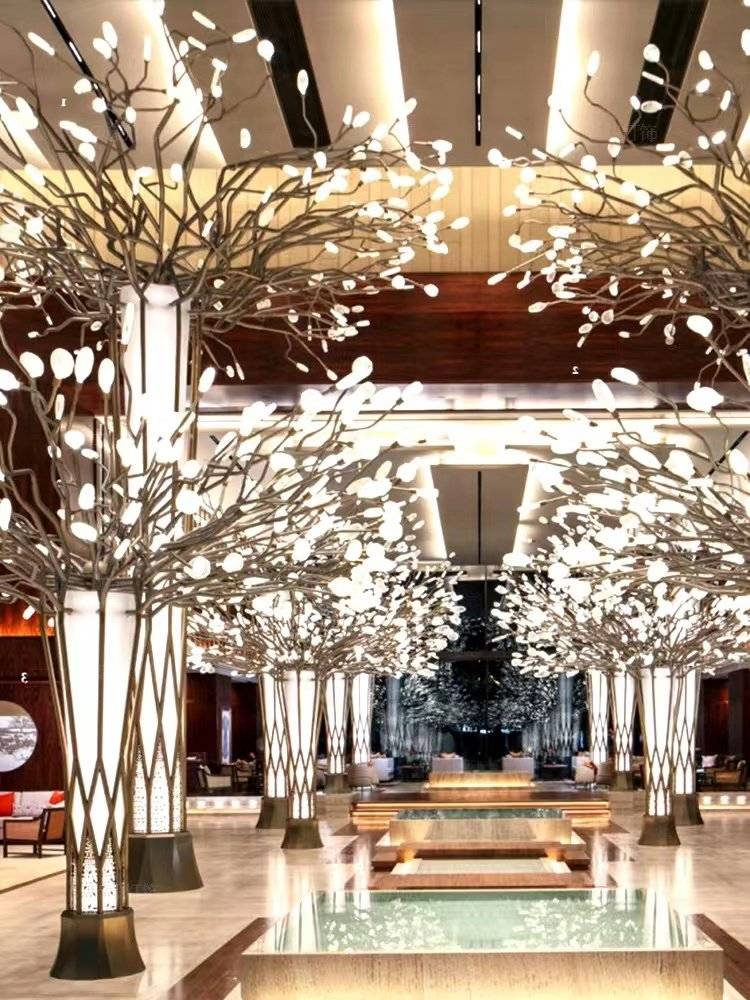酒店大堂景观工程灯具定制公司大厅店铺落地灯售楼部展厅树枝造型
