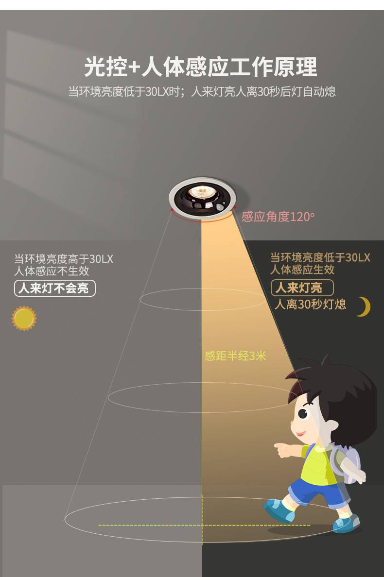 现场应急搜索灯 客厅照明灯 感应式集成射灯 智能无主天花筒灯 超麦