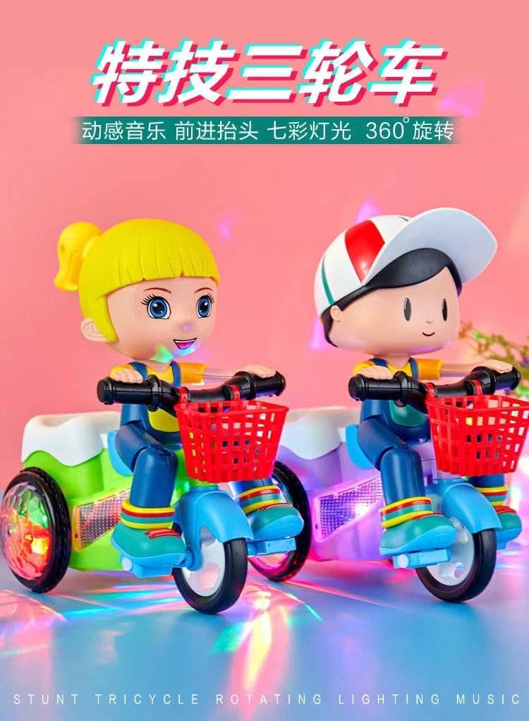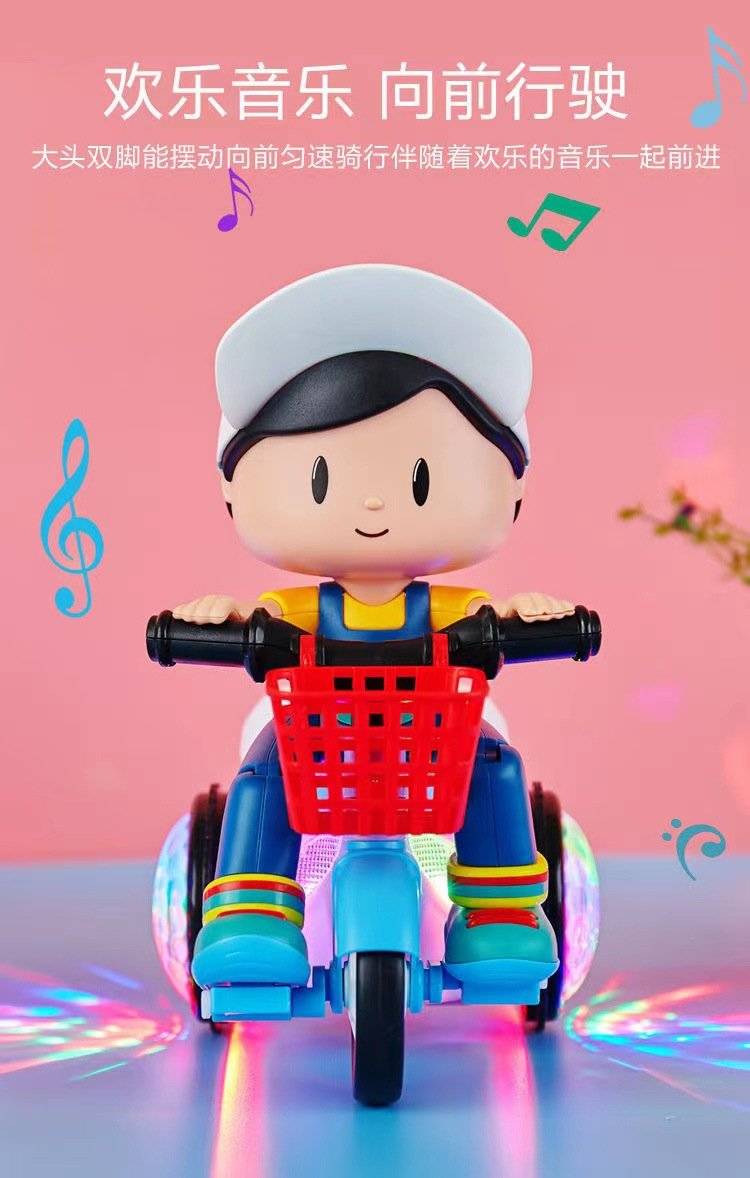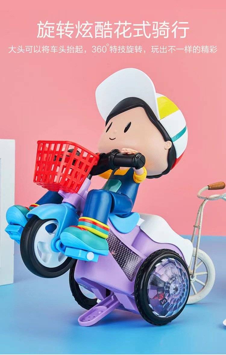 大头儿童电动玩具 旋转特技三轮车玩具 宝宝玩具车批发