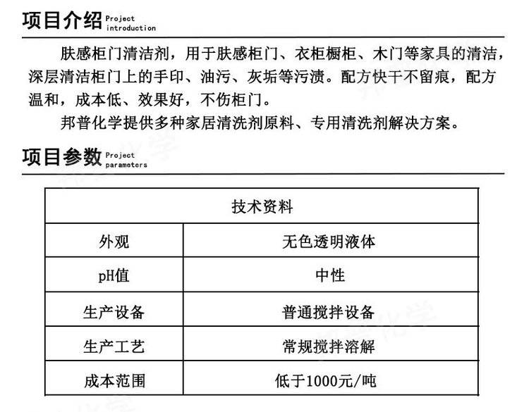 肤感柜门清洁剂 衣柜橱柜清洁剂 白色家具清洁剂 配方原料 技术