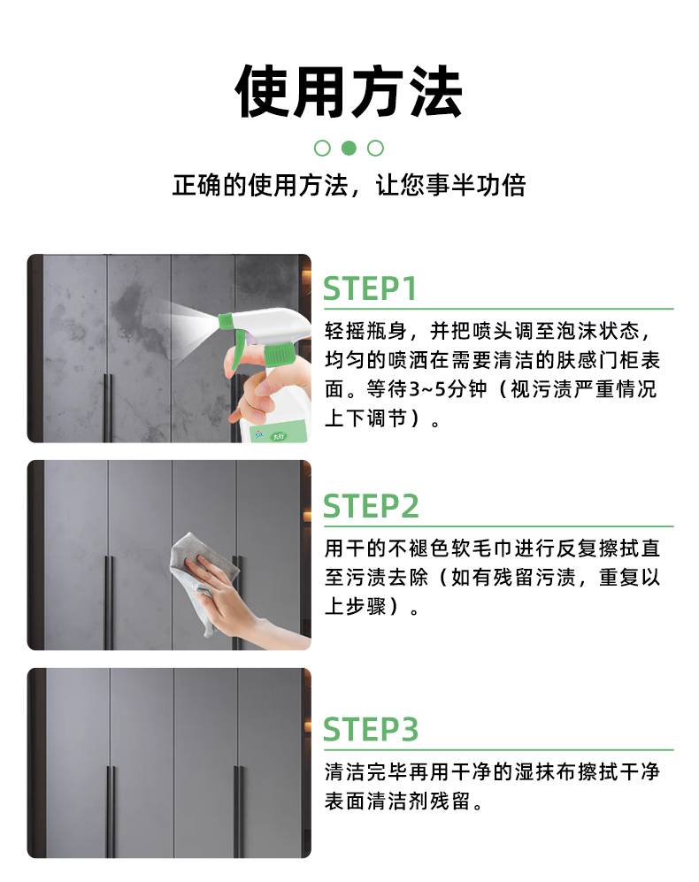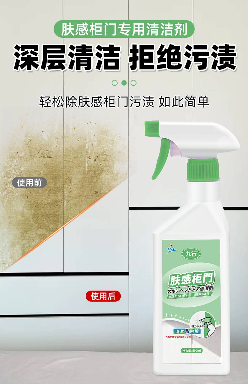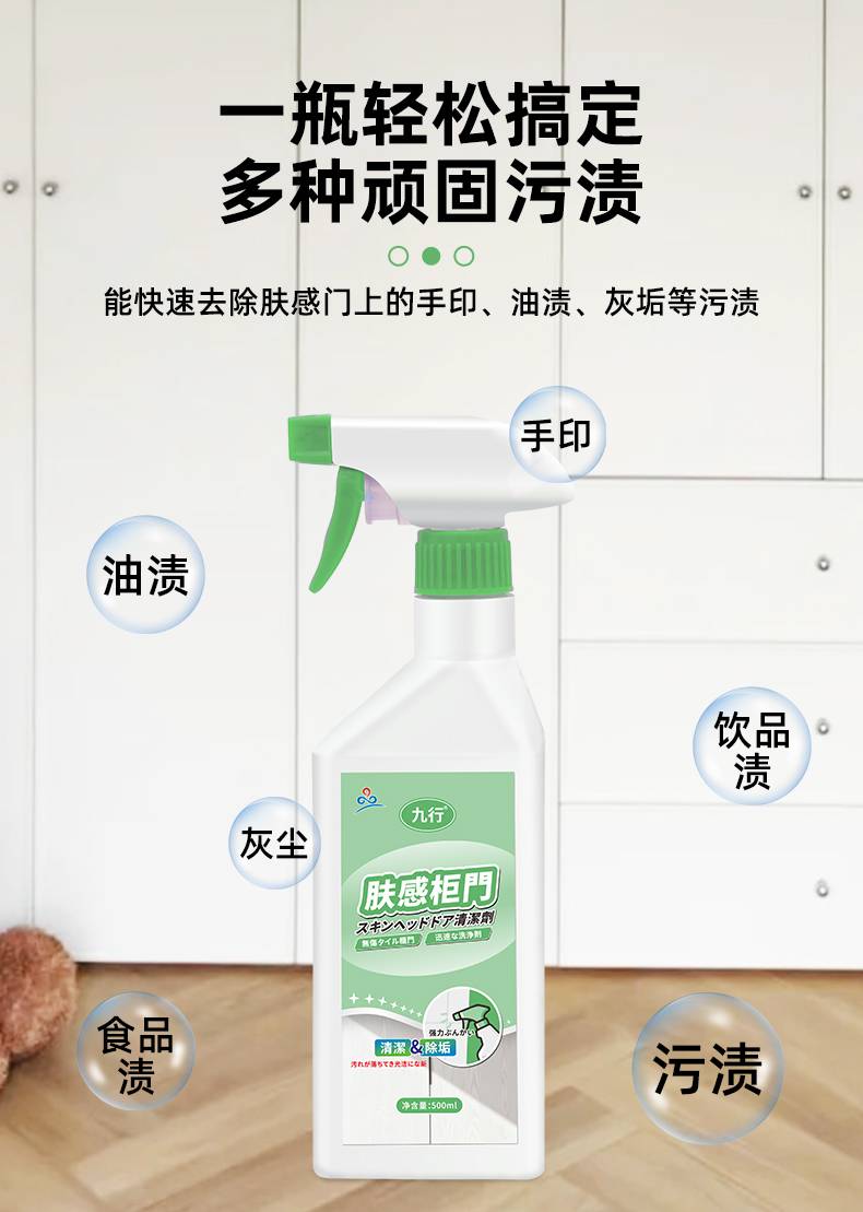 九行肤感柜门白色家具清洁剂去手印专用油污发黄木质门橱柜清洗剂
