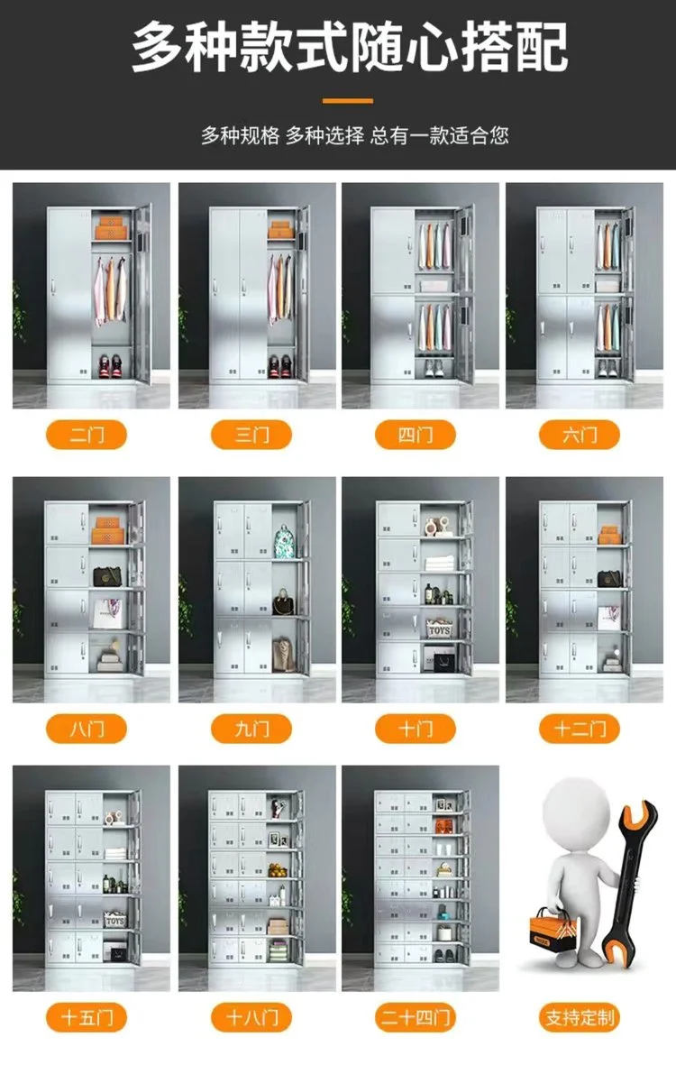 十门铁皮更衣柜 整体5层换衣鞋柜 易清洁防潮橱柜碗柜 可定制