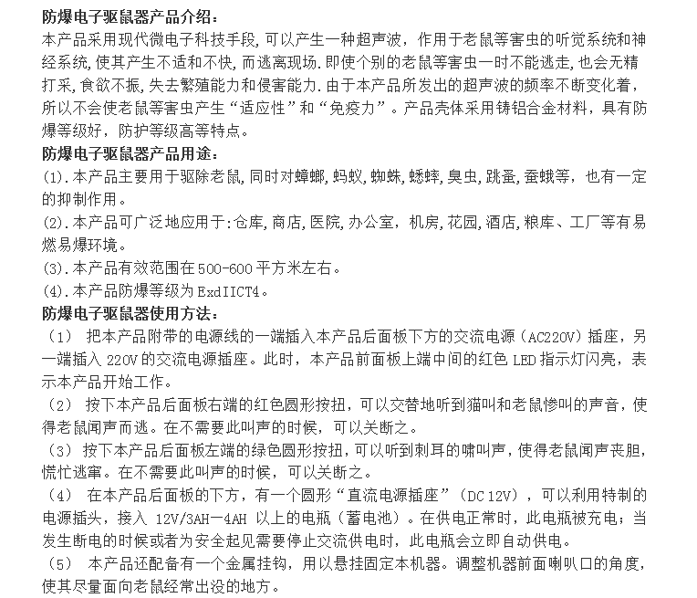 铸铝合金壳体 工厂用防爆电子驱鼠器 防护等级高