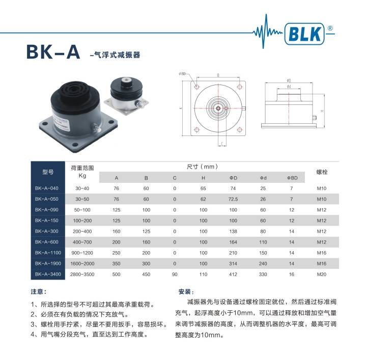 贝尔金BK-A-040气浮减震器 BK-A-050空气弹簧减振器 箱底设备隔振