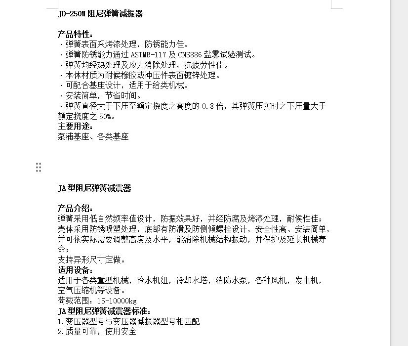 JA型阻尼弹簧减震器 低自然频率值设计 防振效果好 防锈喷塑处理