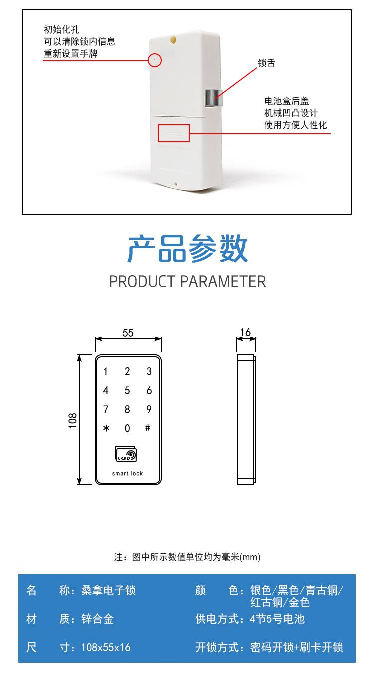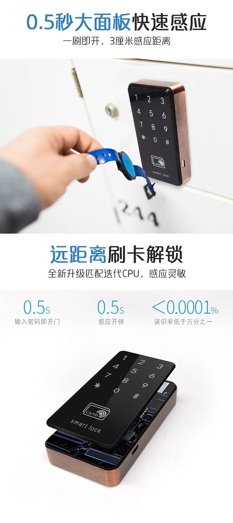 慧聪更衣柜电子密码刷卡锁浴室桑拿锁IC卡感应储物柜智能锁