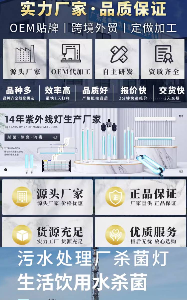 明渠式320W紫外线杀菌灯管水处理150W污水处理厂废气专用光氧灯管