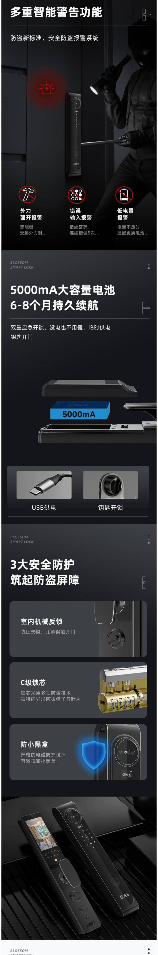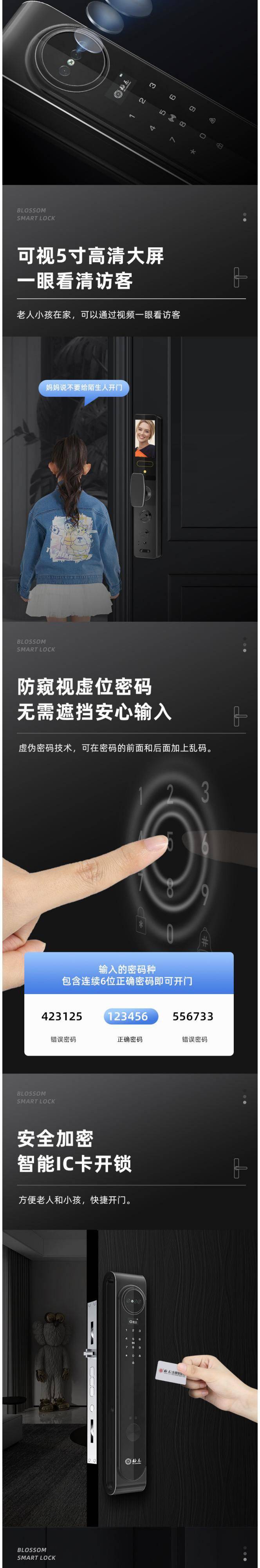 IC卡开锁 家用智能指纹锁 语音导航 0.3秒完成验证 梅花锁