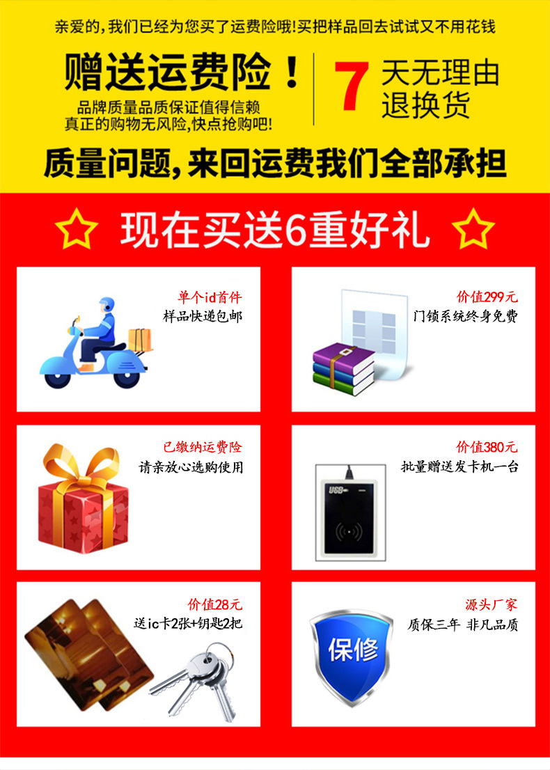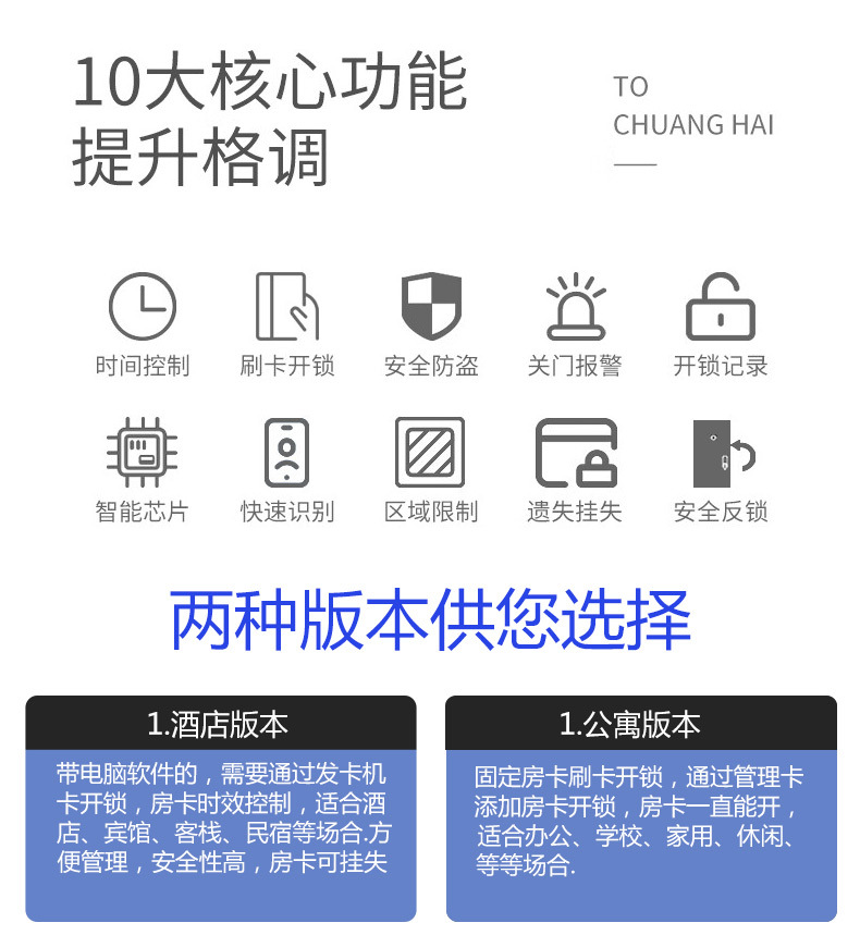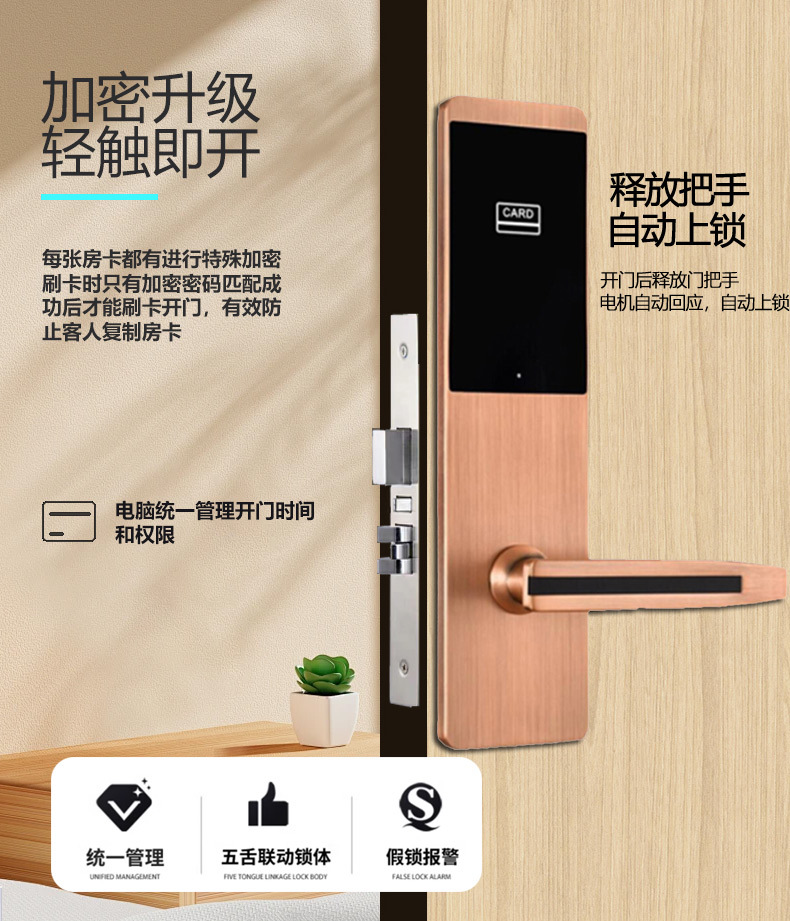 高档酒店门锁锌合金宾馆刷卡锁公寓民宿客房木门IC卡锁蓝牙锁