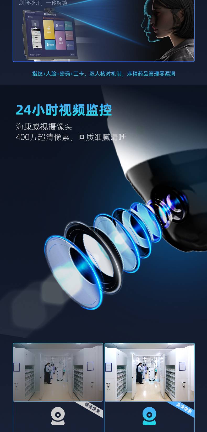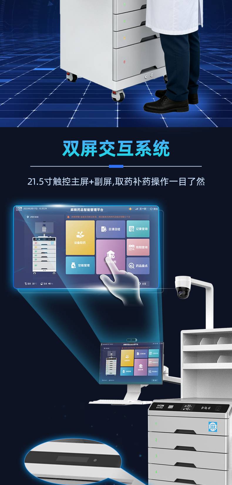 【双人双锁】智能毒麻精药品管理柜指纹+IC卡授权版 温湿度监控