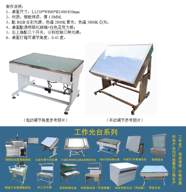 QC工作光台、产品检测、丝印钢网检查