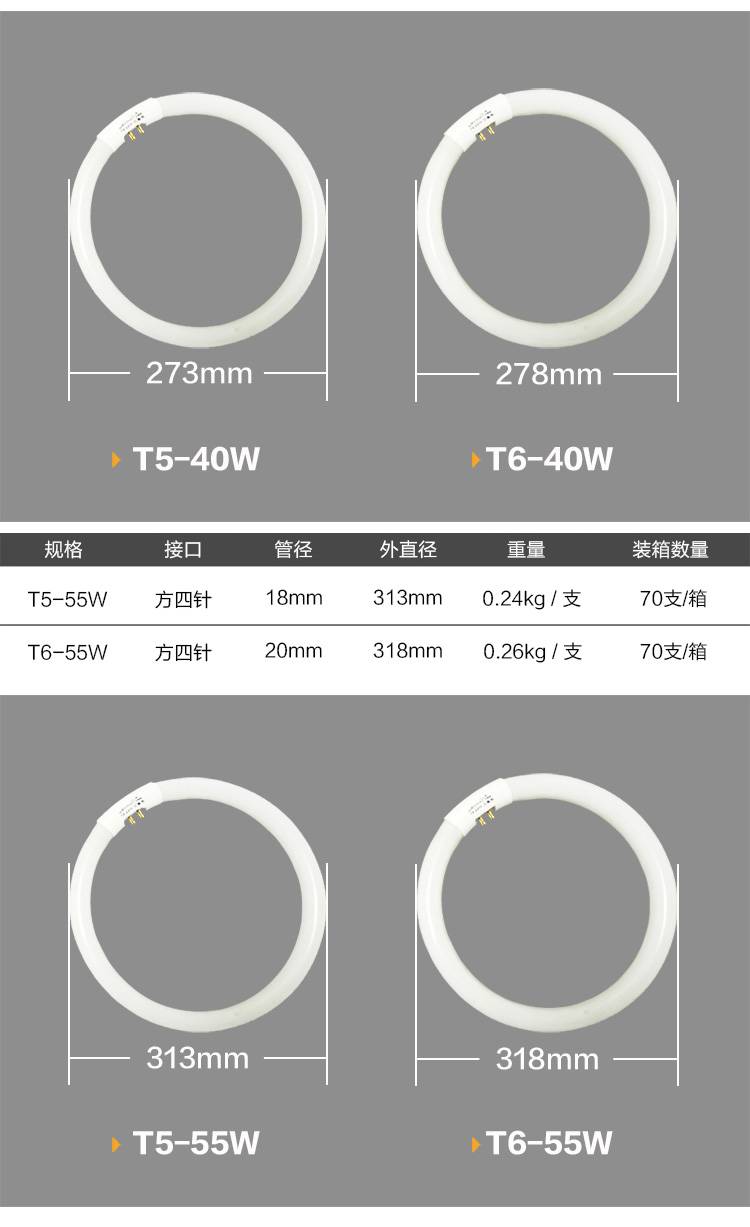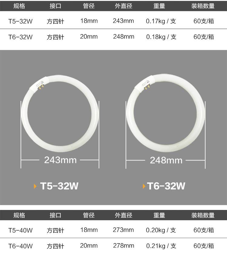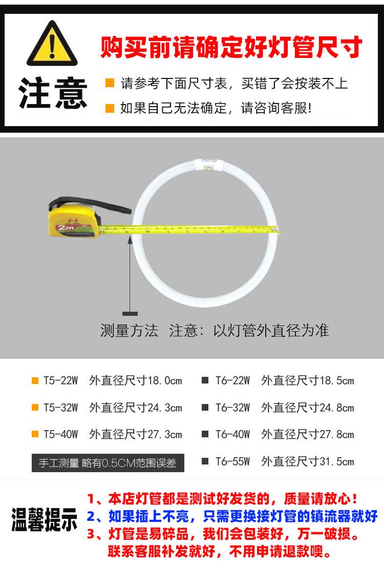 超麦 环形灯管 22W32W40W55W 白光T5三防灯 圆形家用吸顶灯节能
