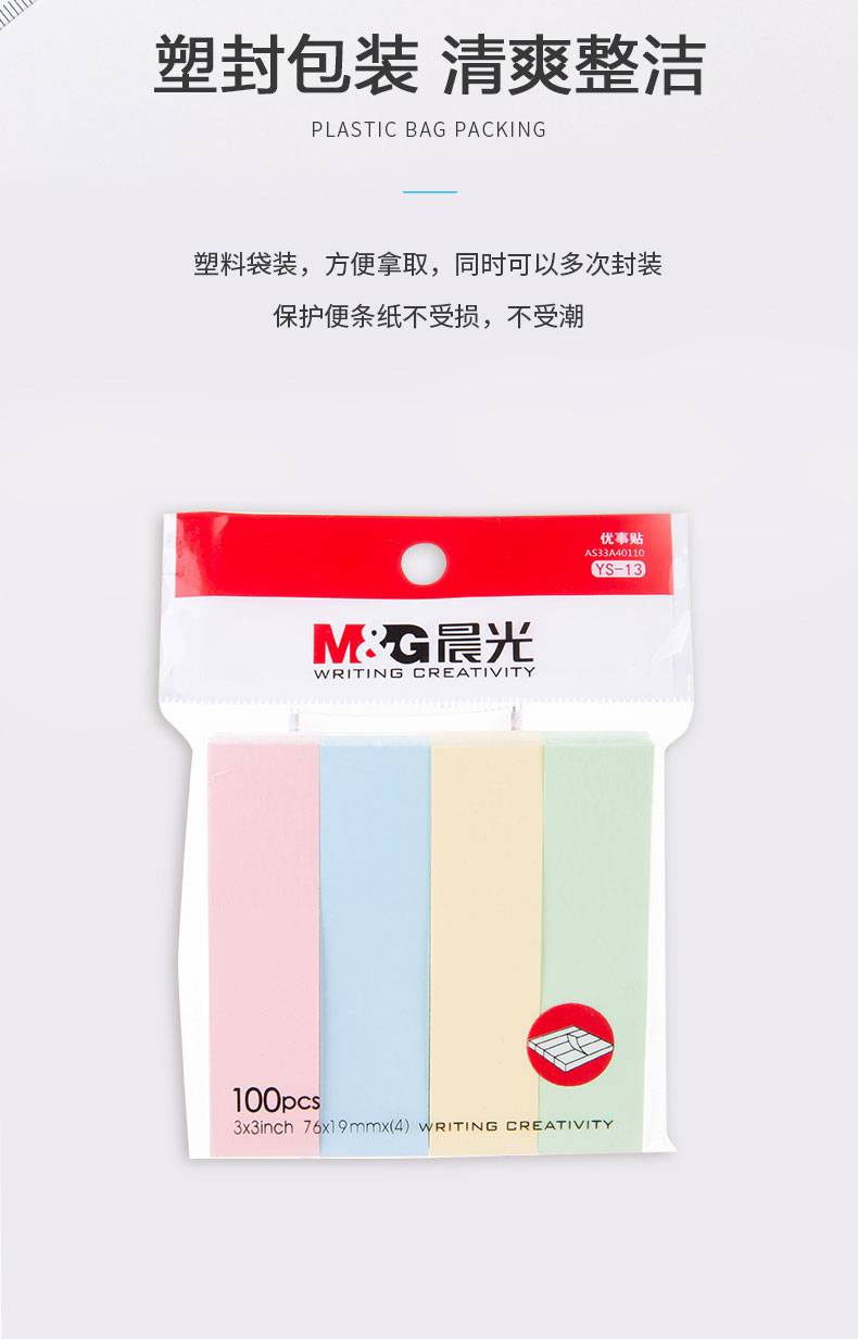 晨光便利贴 76*19mm标签贴 400张4色记事留言贴优事贴 单本装YS-13