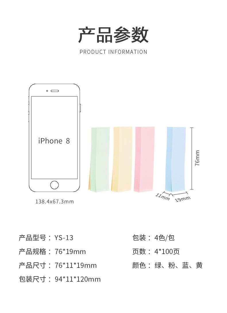 晨光便利贴 76*19mm标签贴 400张4色记事留言贴优事贴 单本装YS-13