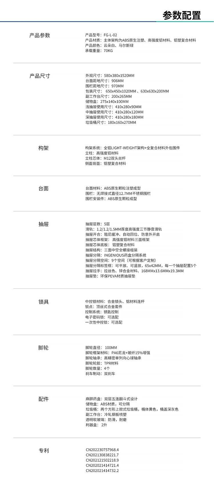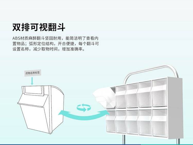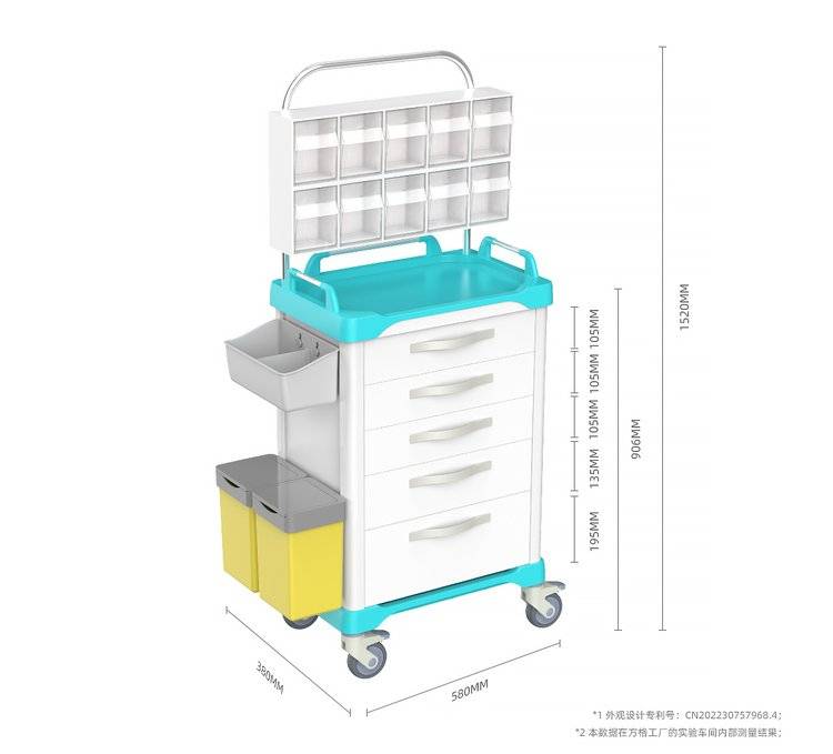 FG-L-02多功能ABS麻醉车 五抽+双排翻斗药架组合