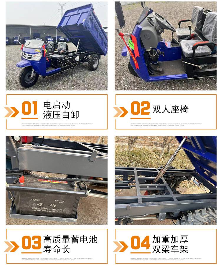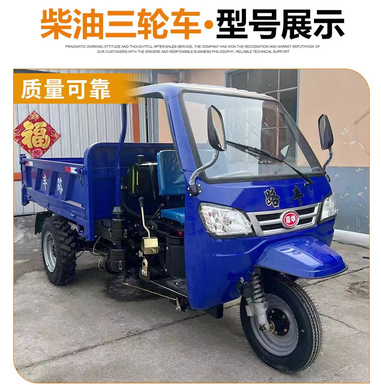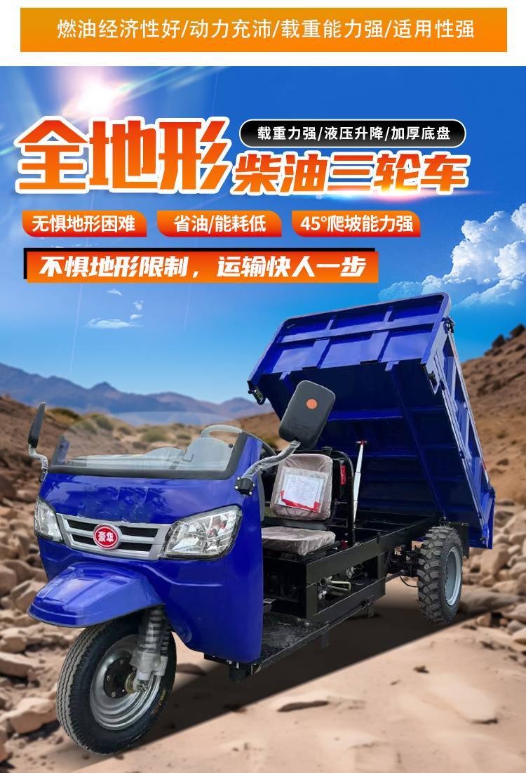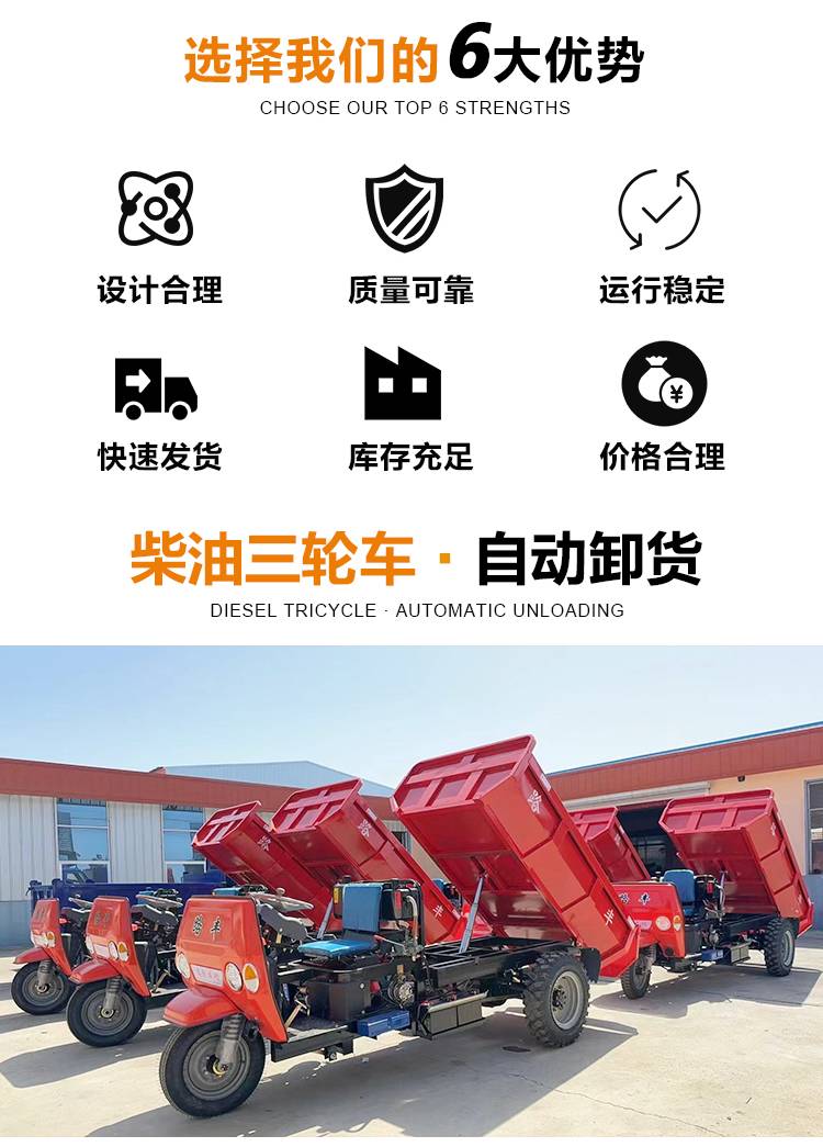 工程用18马力柴油三轮车 工地矿用拉货翻斗自卸车 双梁承重型