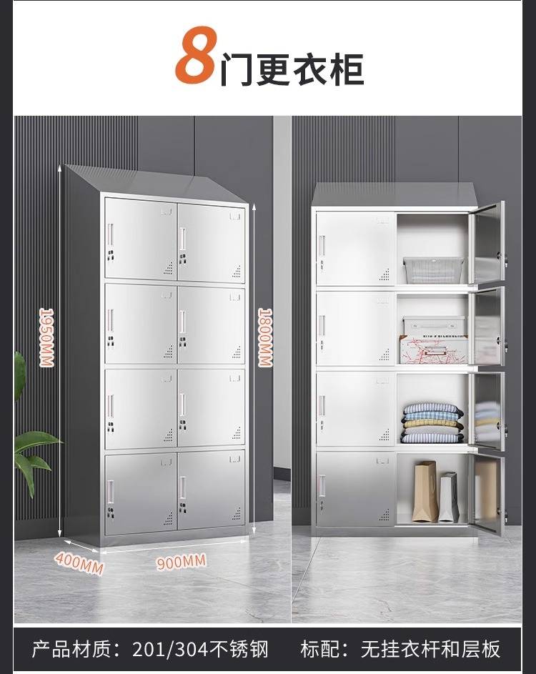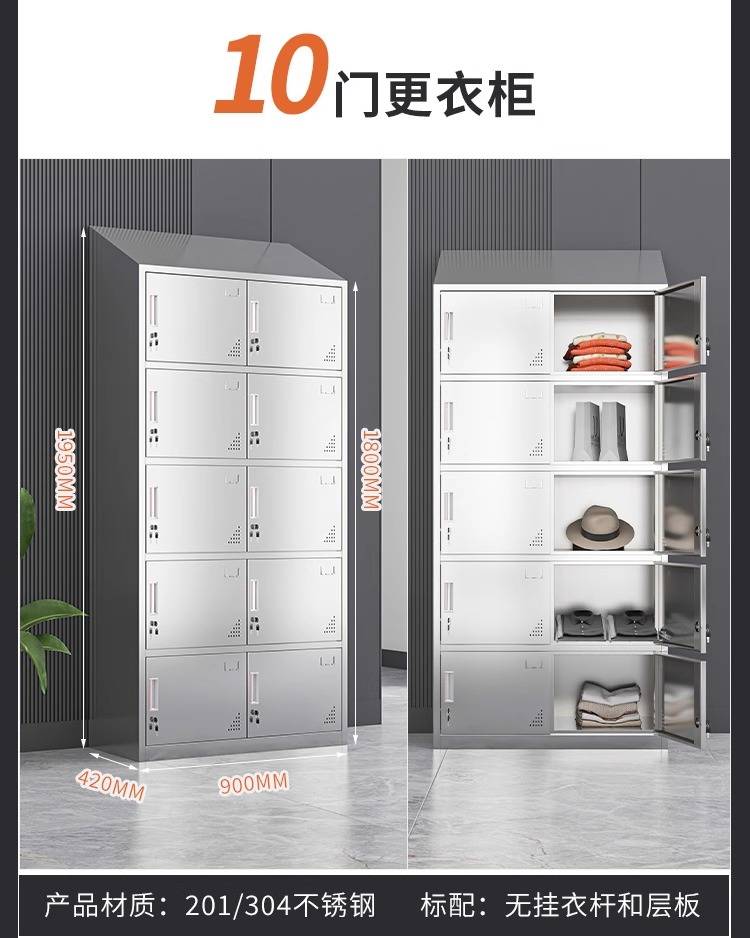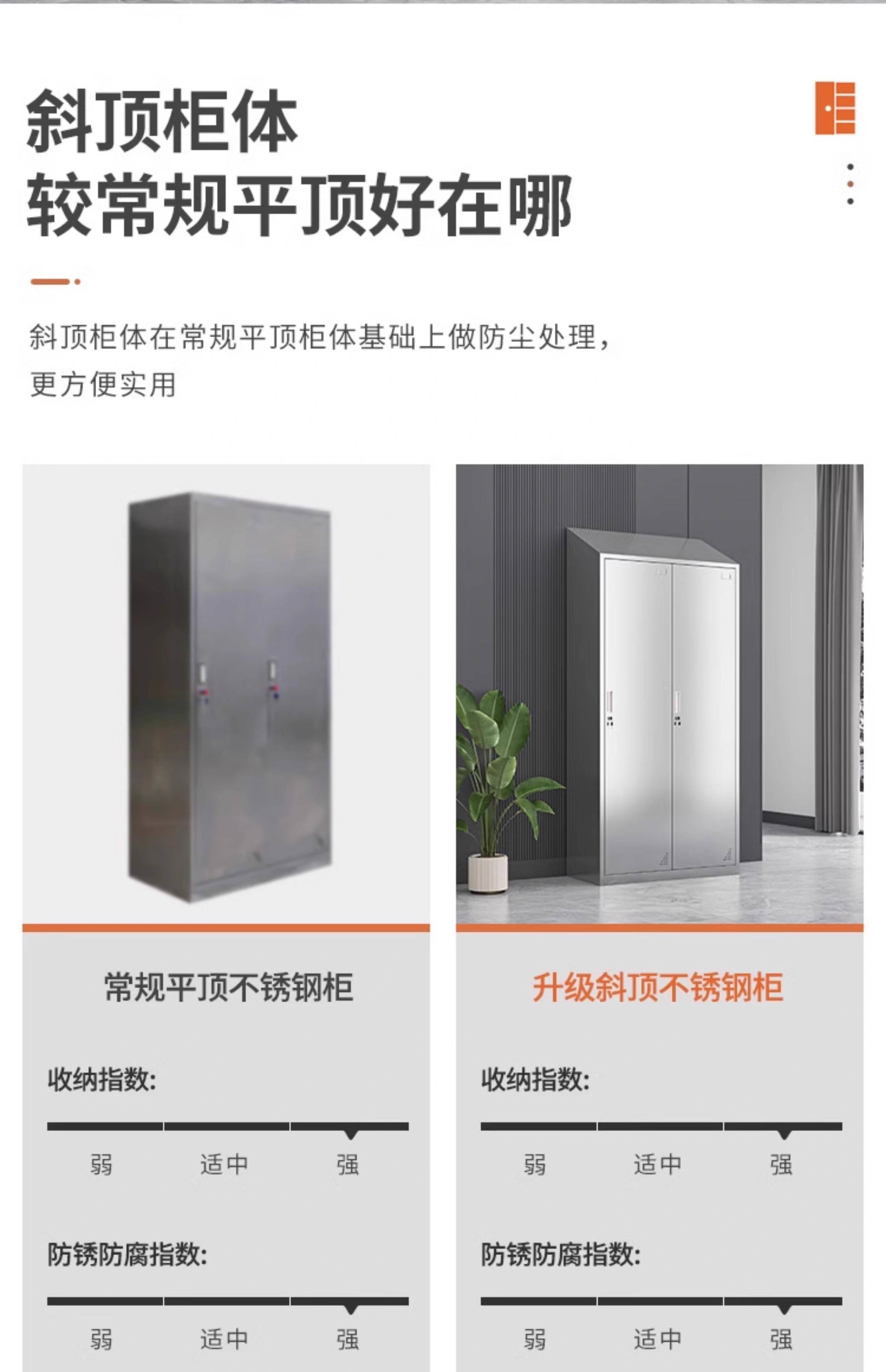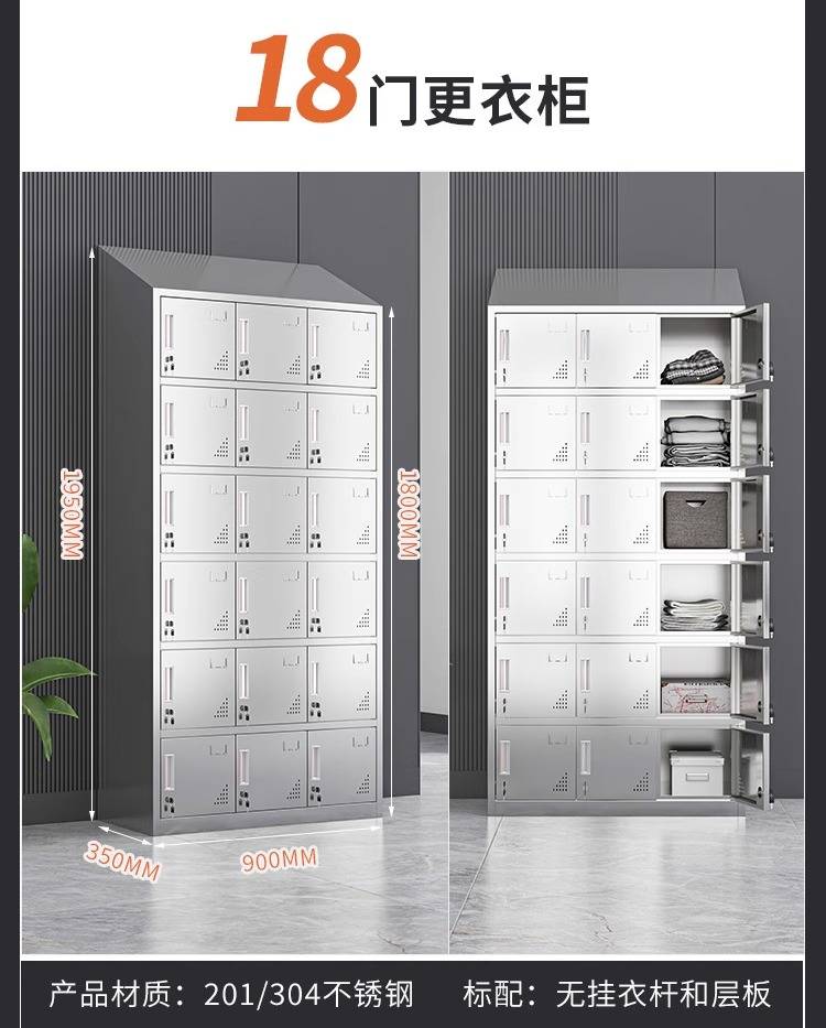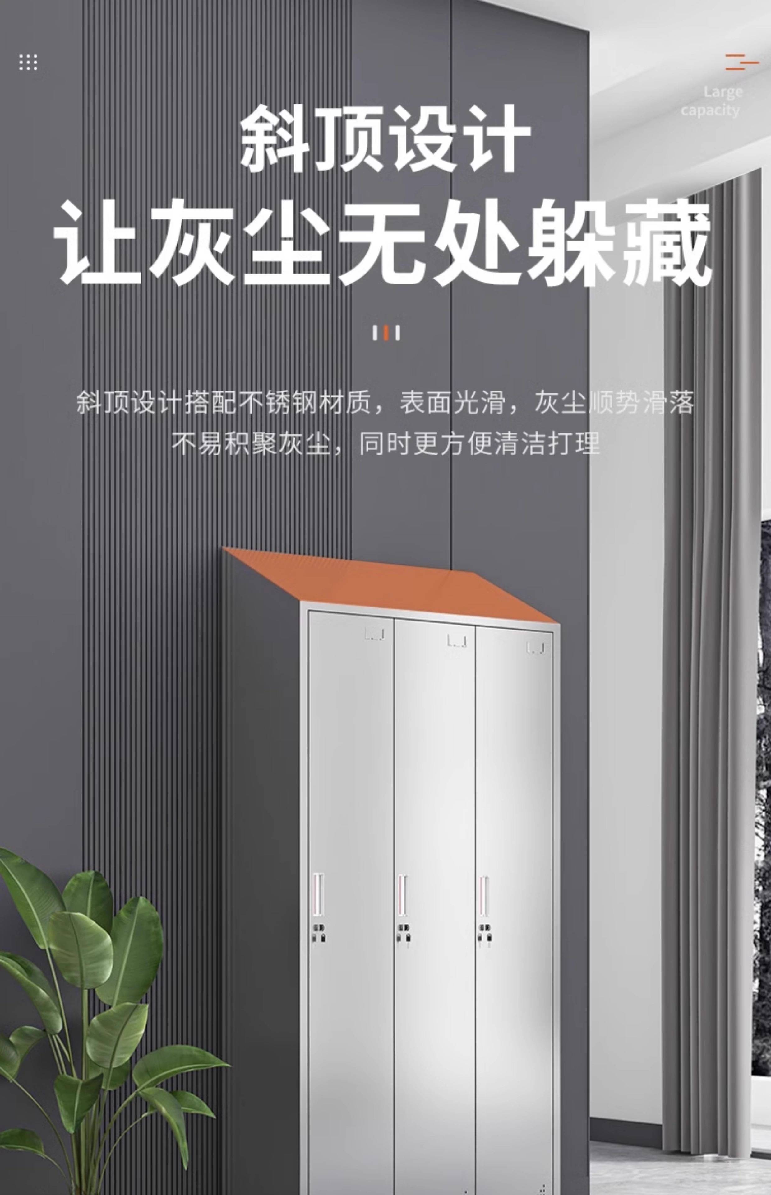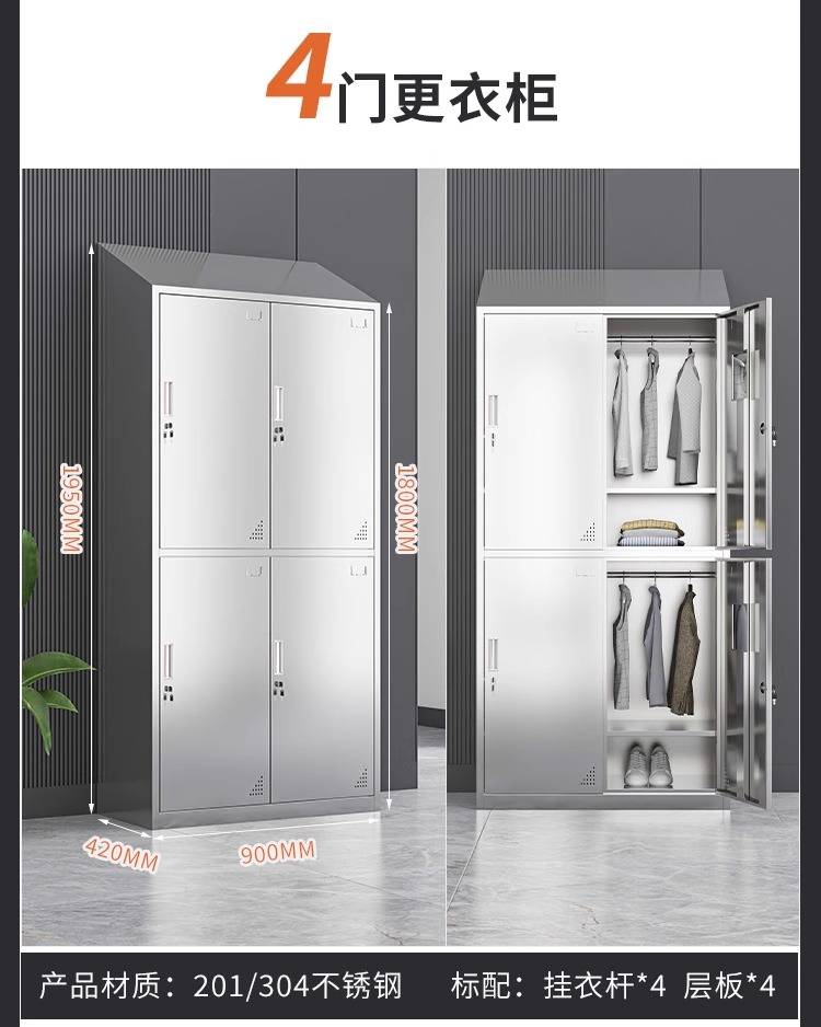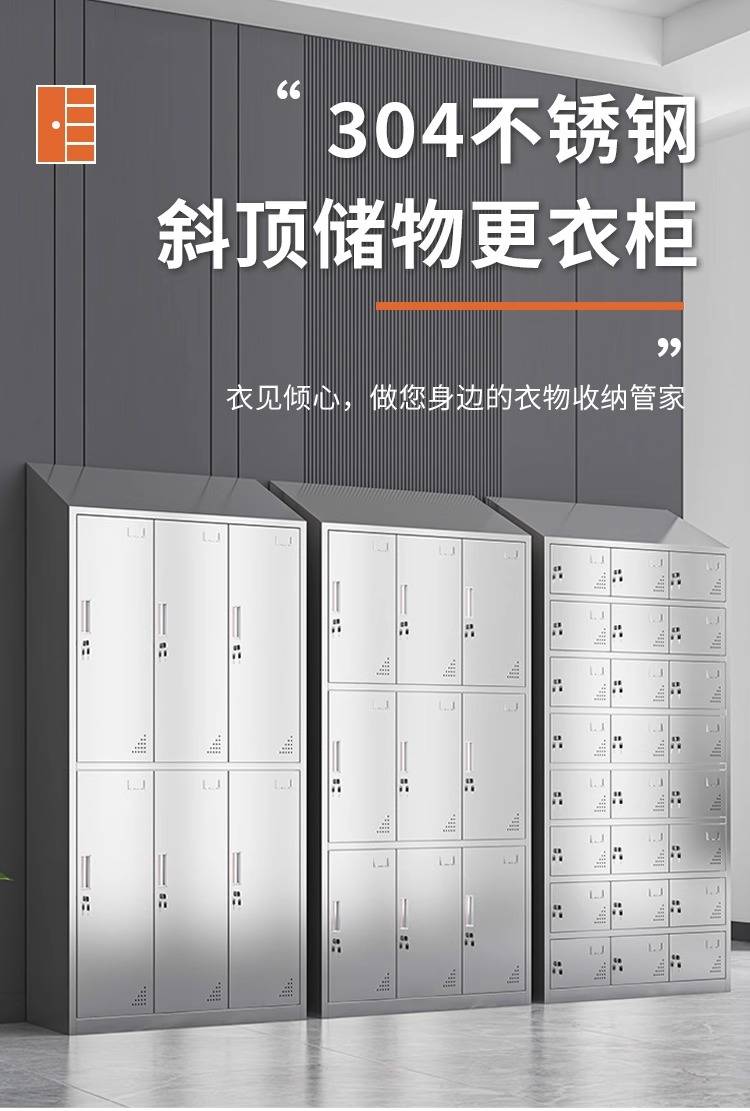 领柜304不锈钢斜顶更衣柜无尘车间易清洁员工换衣柜宿舍储物柜