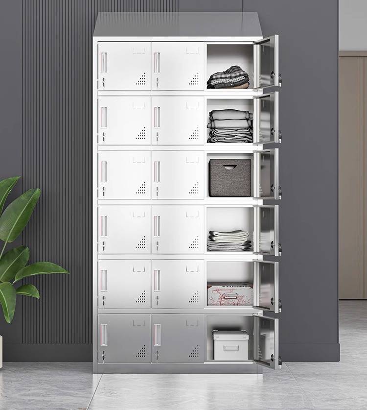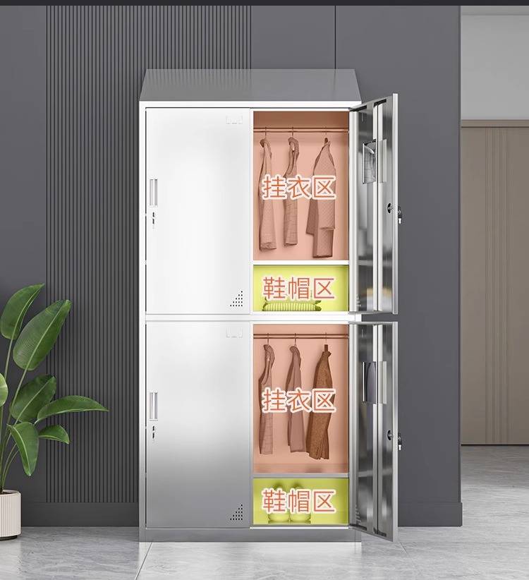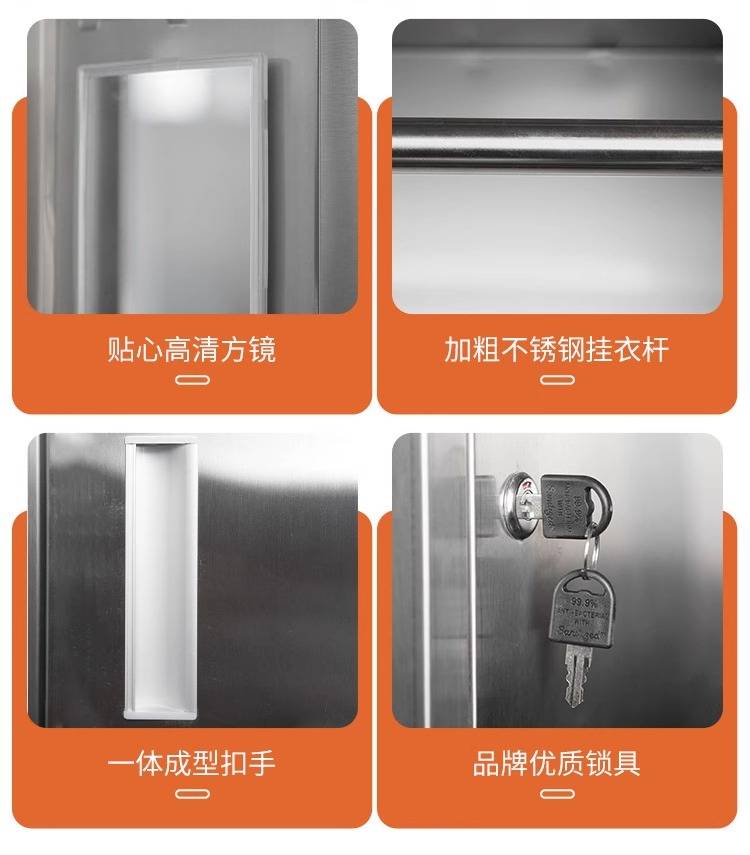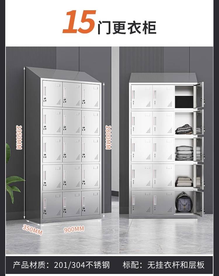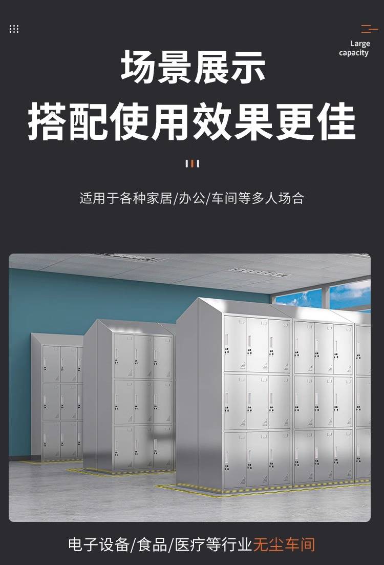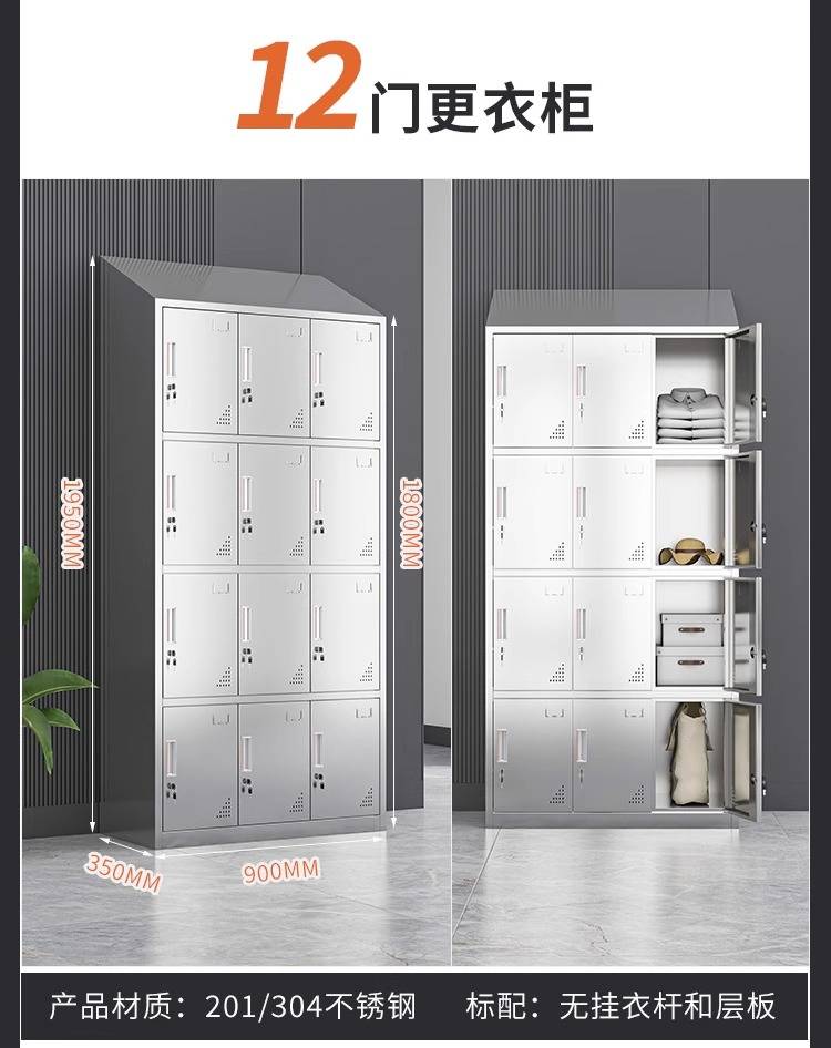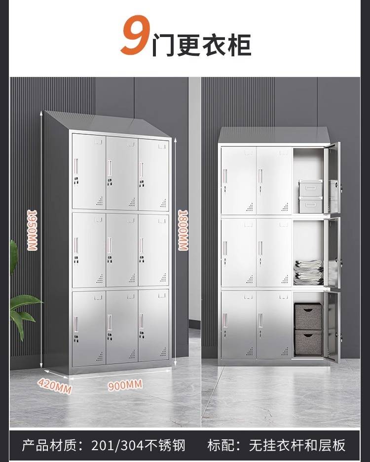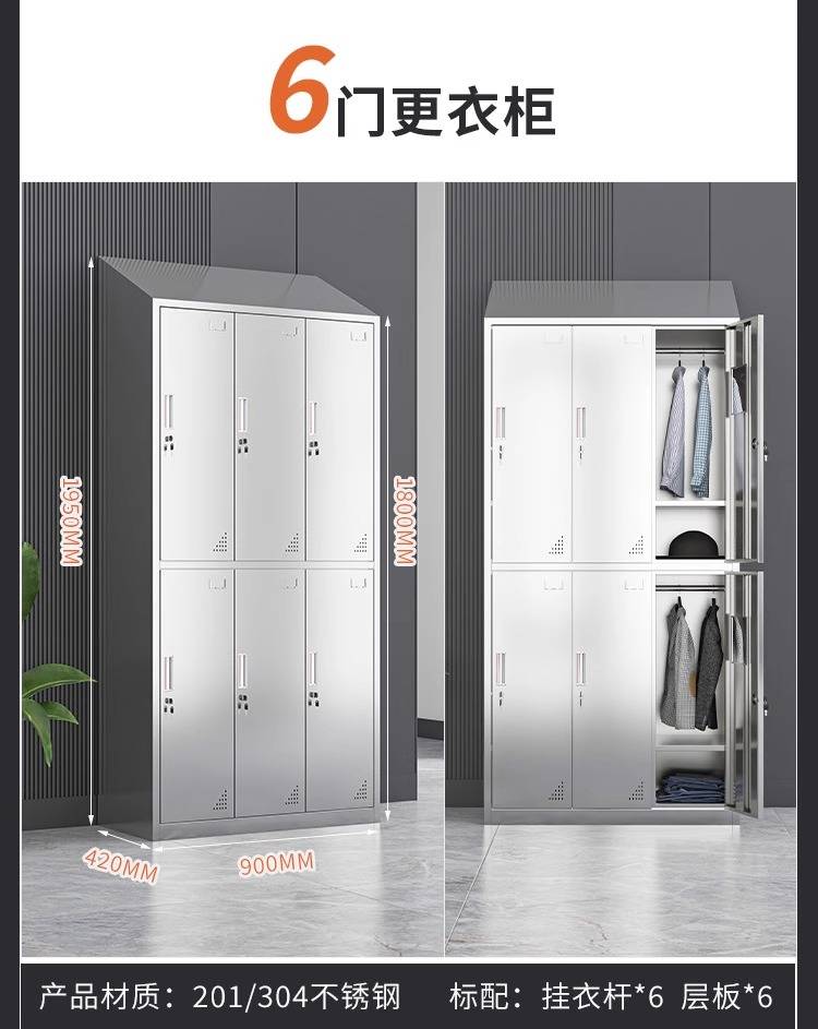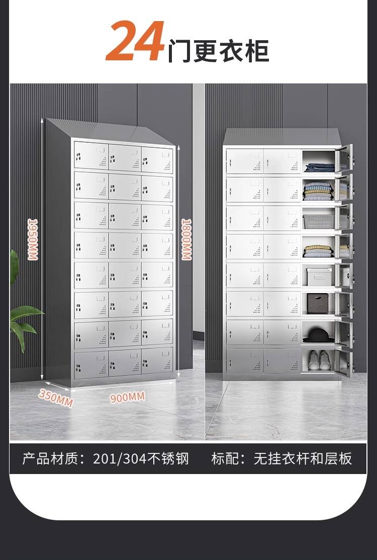 领柜304不锈钢斜顶更衣柜无尘车间易清洁员工换衣柜宿舍储物柜