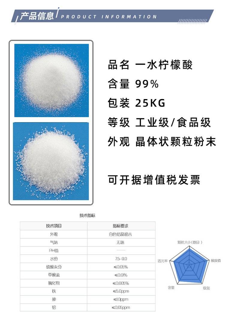 2222英轩食品添加剂 5949-29-1一水柠檬酸 食用食品级 酸度调节清洗剂