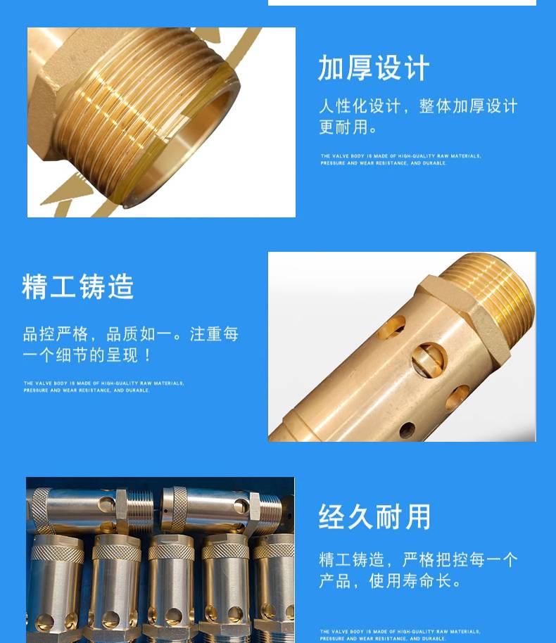 弹簧1/4英寸螺纹连接黄铜气动提升 开山空气压缩机压力安全阀