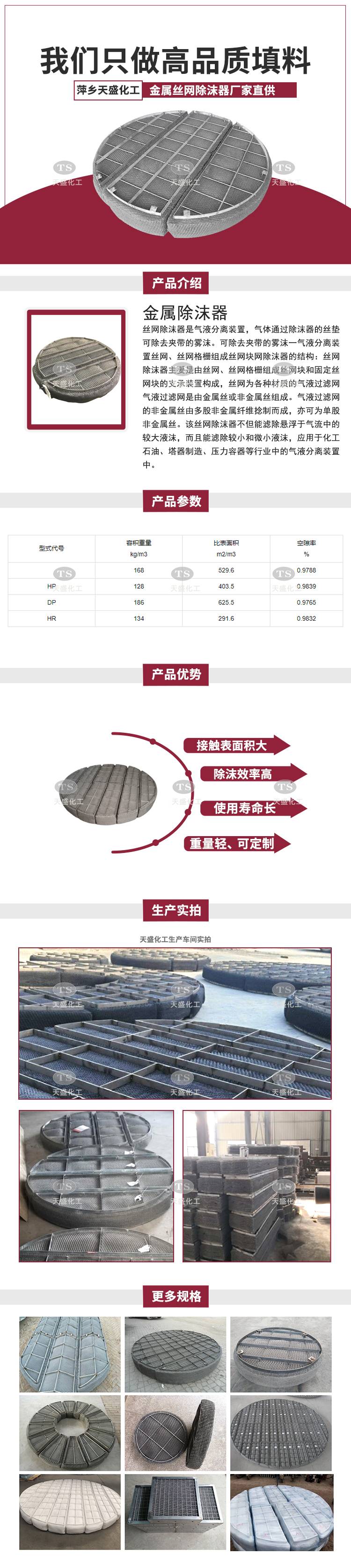 天盛化工气液分离装置丝网除沫器空气净化严格选材源头厂家