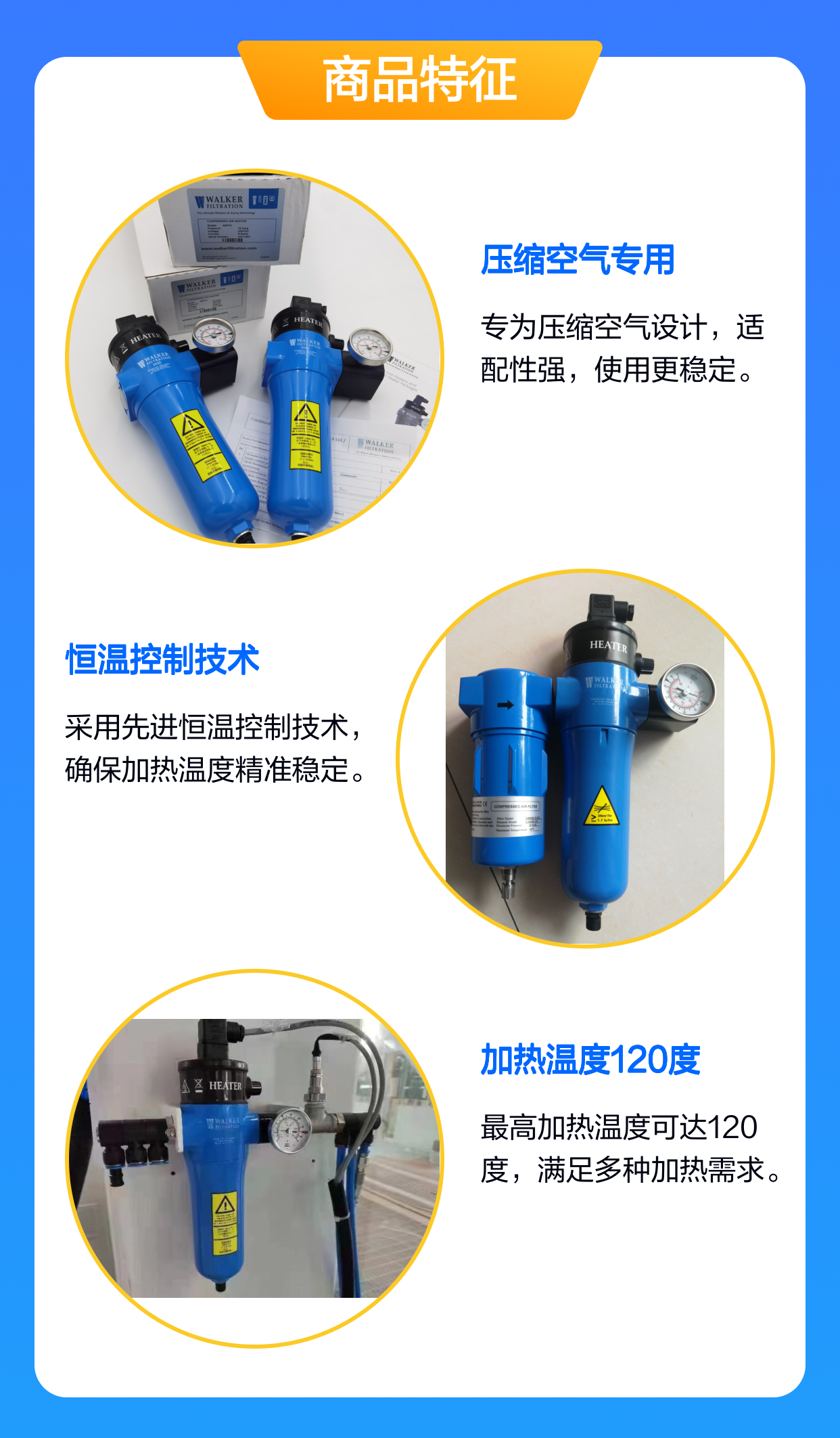 沃克气体加热器 A39TH压缩空气专用 恒温控制 A39FTH 加热温度120度