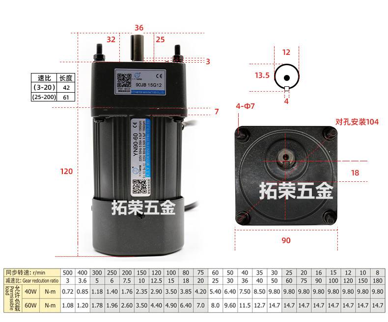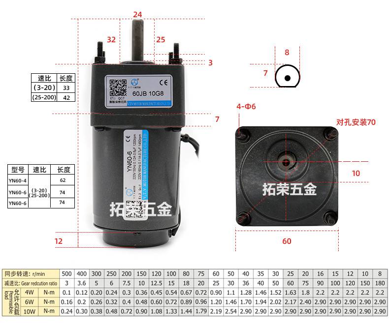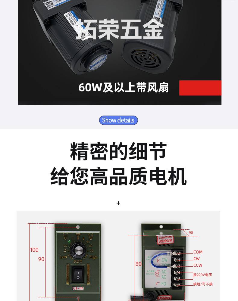 北京微特微VTV电机调速定速减速马达YN60/70/80/90/100 6W-250W