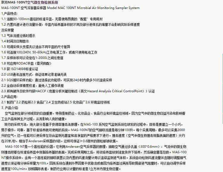 默克MAS-100NT 空气浮游菌采样器 华宇净化设备