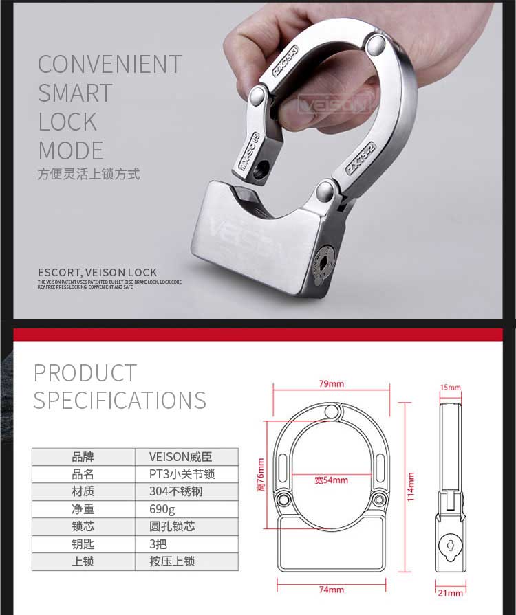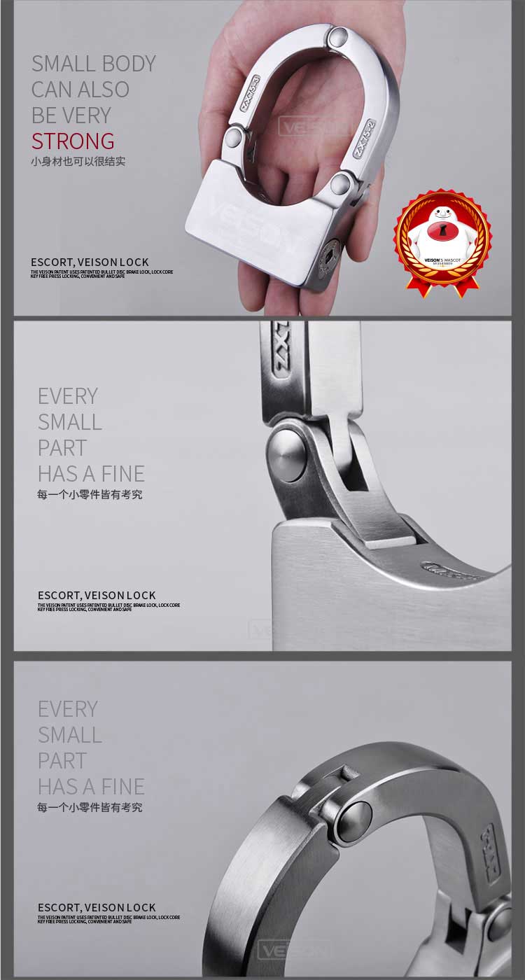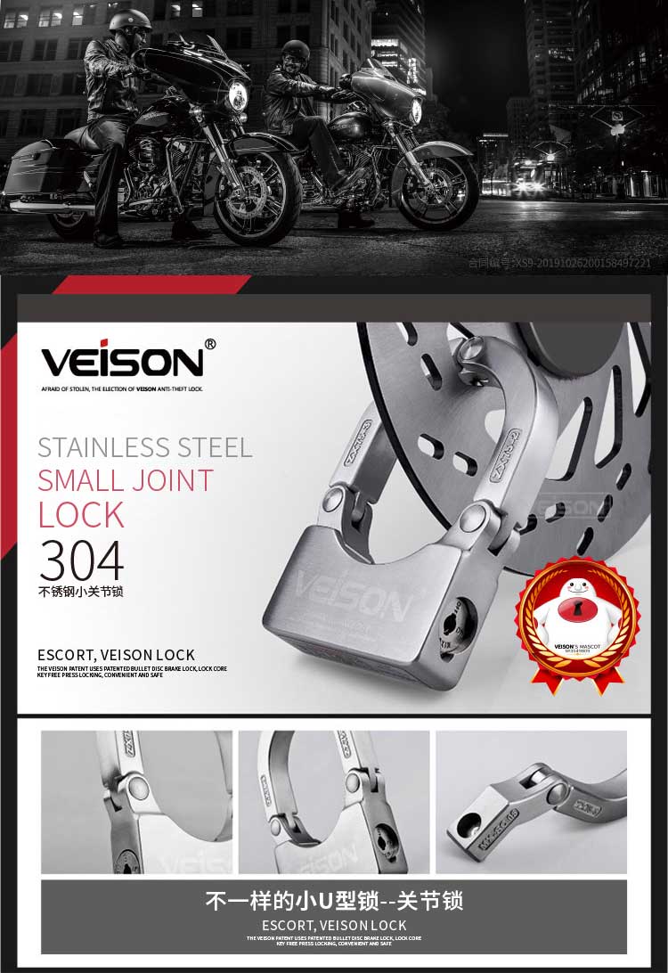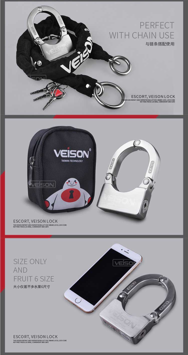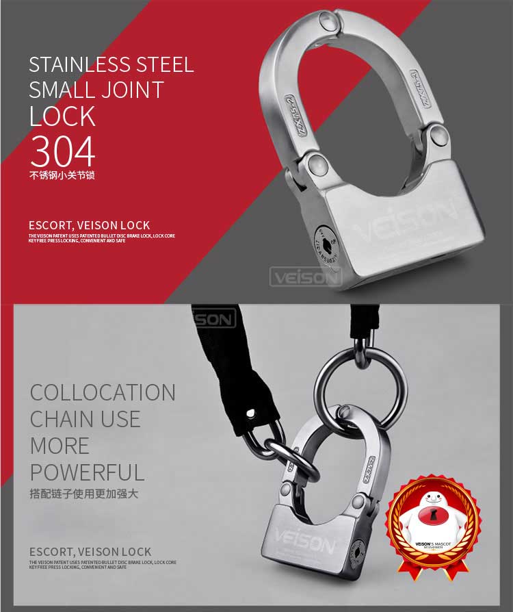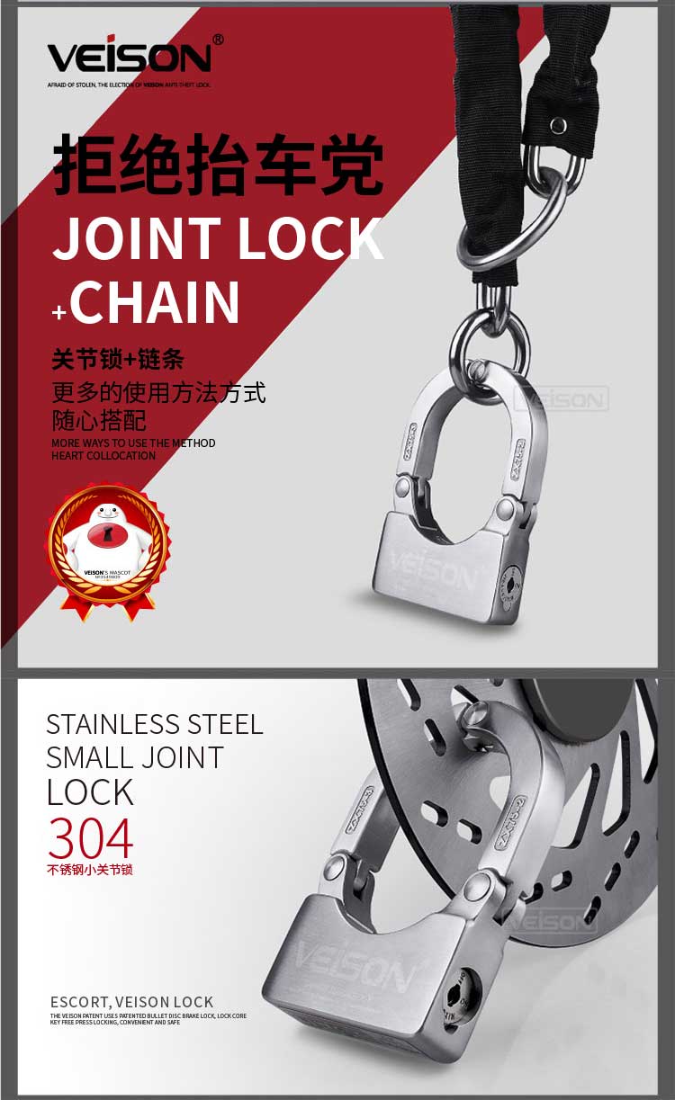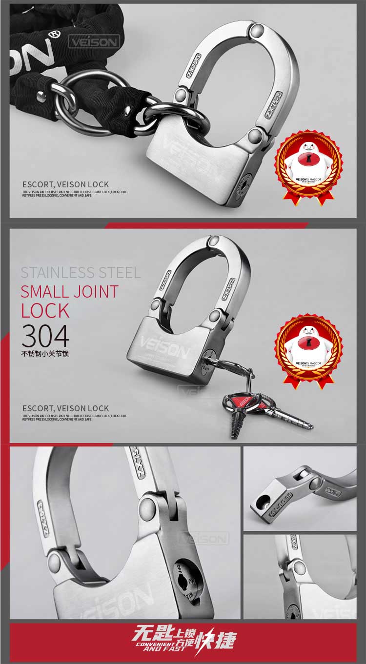 VEISON威臣 摩托车碟刹锁小U型锁关节锁山地车自行车锁链条锁