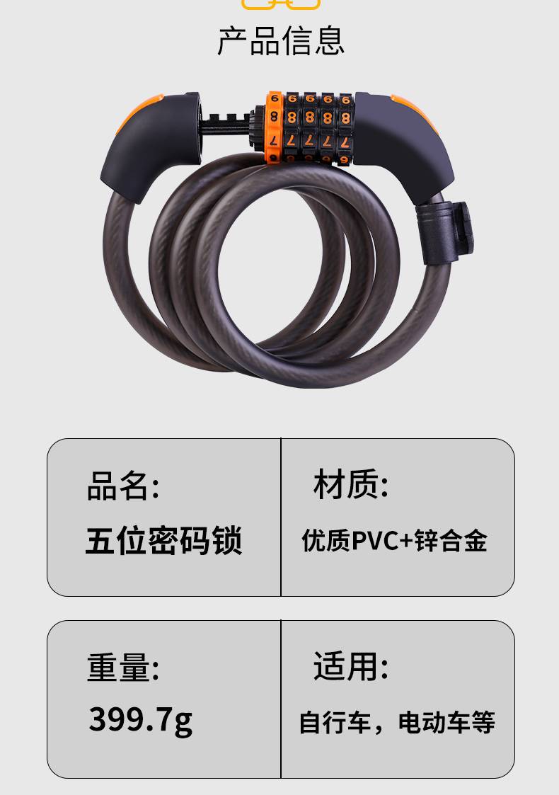 永久自行车锁防盗锁5位密码锁山地车锁摩托车单车链条锁电动车锁