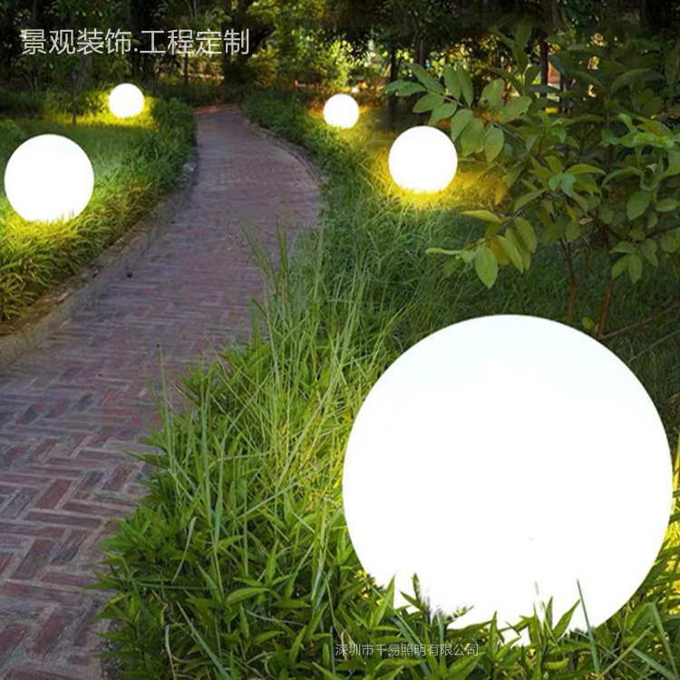 千易LED 50CM圆形发光球 暖白光简约地插灯 室内户外草坪装饰灯