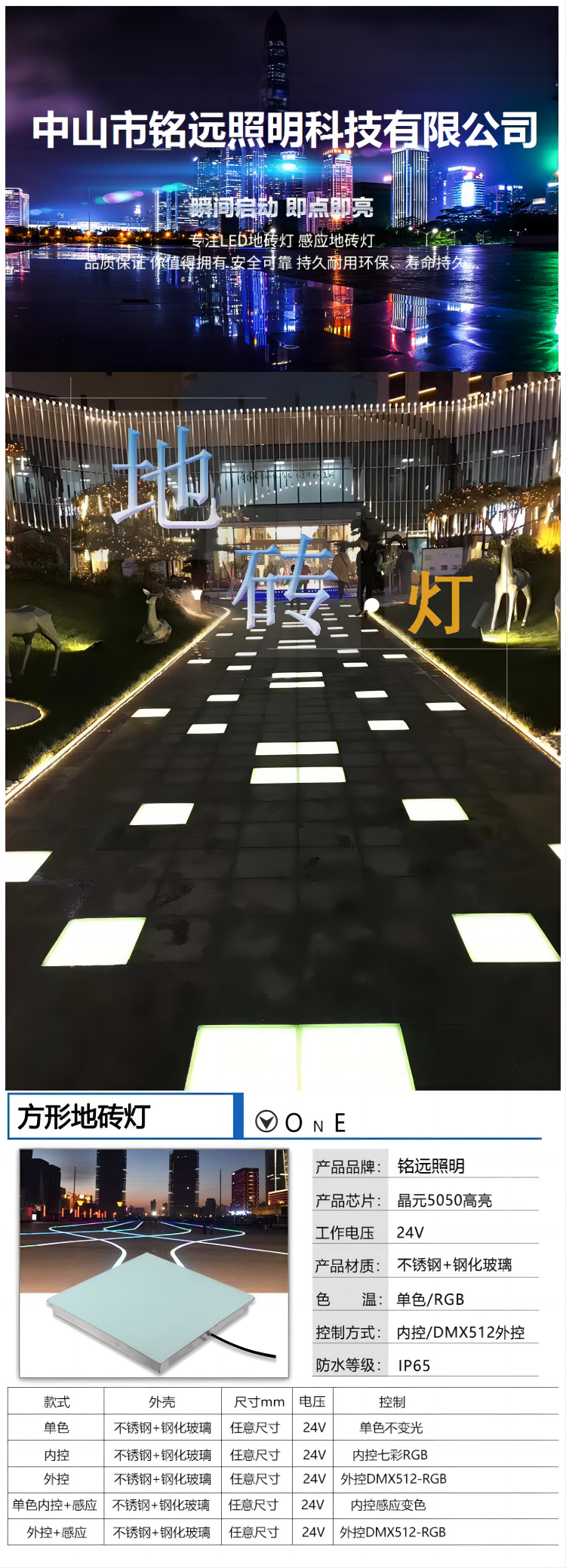 铭远品牌定制正方形地砖灯DC24V电压室内装饰氛围灯
