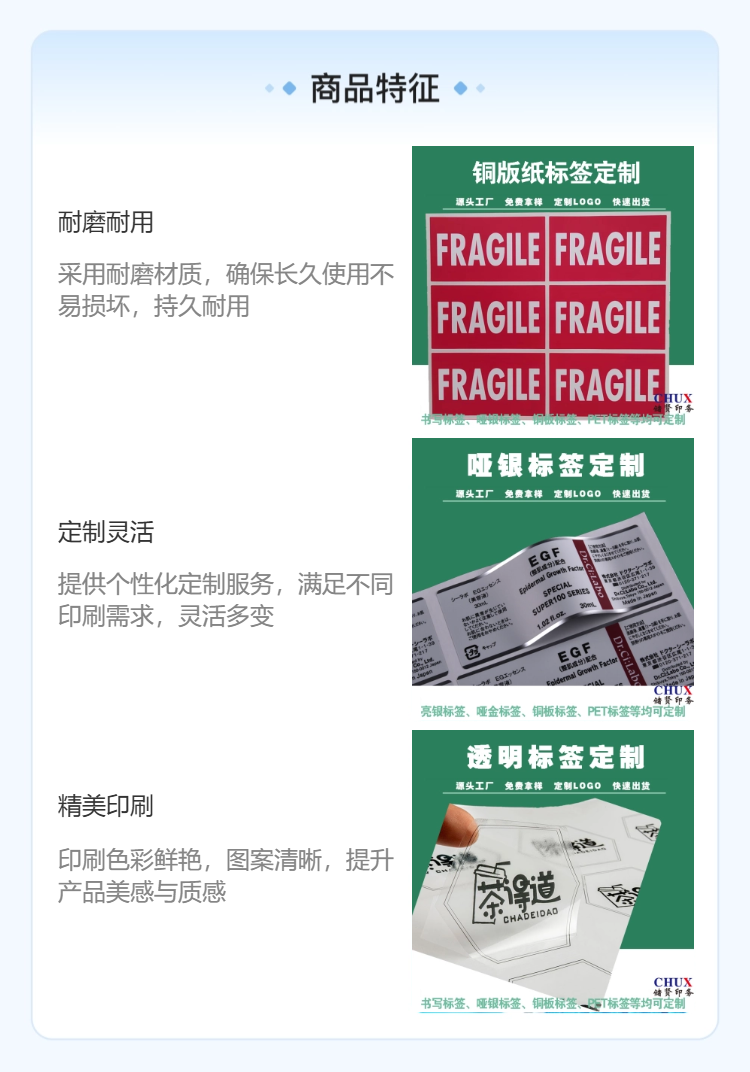 储贤耐久性标签 塑料桶玻璃瓶不干胶贴纸 化妆品化工标签纸定制